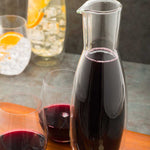 Serve any kind of beverage in our Forma Professional 30-ounce Round Glass Wine and Water Carafe. Designed with a double wall, this round carafe creates the illusion of wine floating mid-air to catch the eye of every customer and insulates drinks to keep wine cool when serving guests outdoors. Equipped with a built-in spout, this double-wall carafe provides a steady flow to avoid splashes when refilling drinks. The rolled rim of this water carafe adds a touch of elegance to your table setting, making it perfect for formal occasions while enhancing pouring precision. With a crystal clear finish, this wine pitcher beautifully displays the colors of your lemonade, orange juice, and other fruit drinks. Made from premium glass, this clear carafe is dishwashable to streamline your cleaning process during a busy shift. Each red wine jug measures 3.9 inches in diameter by 11.6 inches in height and has a capacity of 30 ounces. Sold in a 1 count box