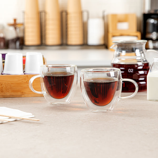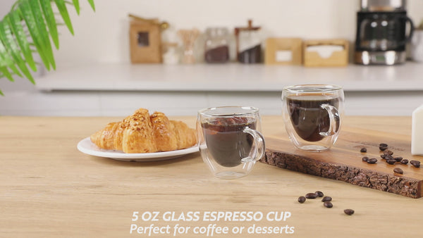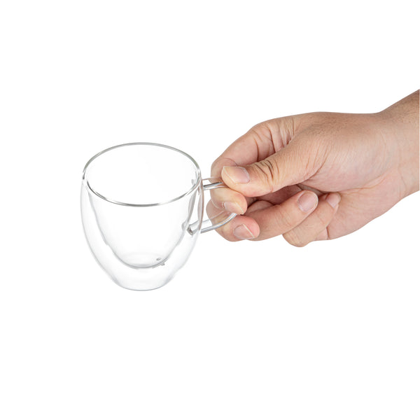 5 OZ GLASS COFFEE CUP - DOUBLE WALL, BOROSILICATE, WITH HANDLE