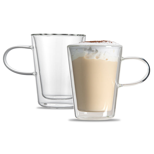 Ensure comfortable beverage service with thermal efficiency. The Forma Professional Double-Wall Glass Mug provides double-wall insulation that keeps beverages hot while maintaining a cool exterior, enhancing customer satisfaction with every sip. Crafted from borosilicate glass, this borosilicate mug offers exceptional durability and resistance to thermal shock, minimizing breakage in busy environments. Its freezer compatibility allows for advanced preparation during peak hours, offering flexibility in preparation and storage. The ergonomic handle offers a comfortable grip, enhancing the drinking experience for patrons. With a sleek, clear coffee mug design, these mugs elevate table presentation. Dishwasher-safe glass streamlines cleaning, saving labor hours and ensuring efficient operations. Each mug measures 2.7 inches in length, providing a compact solution for diverse menu offerings. Each order includes 12 Forma Professional Double-Wall Glass Mugs.