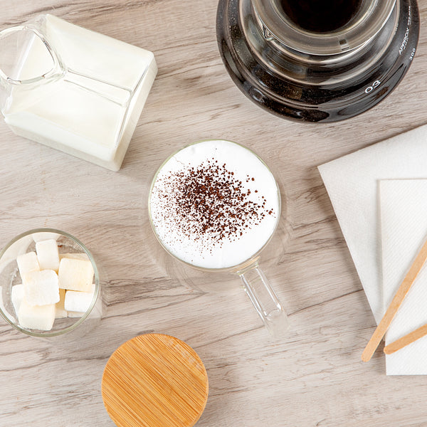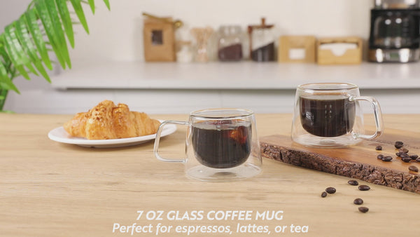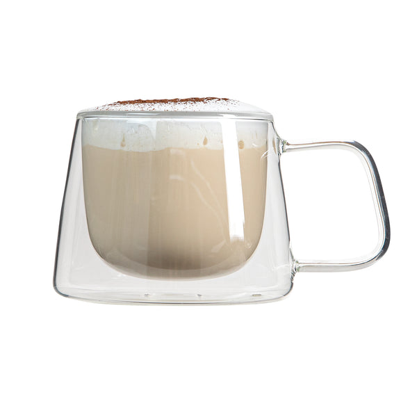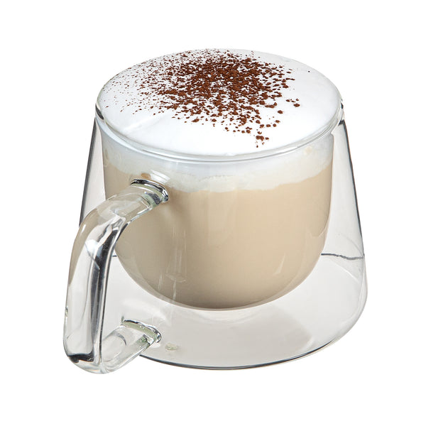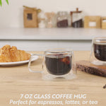 7 OZ GLASS COFFEE MUG - DOUBLE WALL, BOROSILICATE, WITH HANDLE