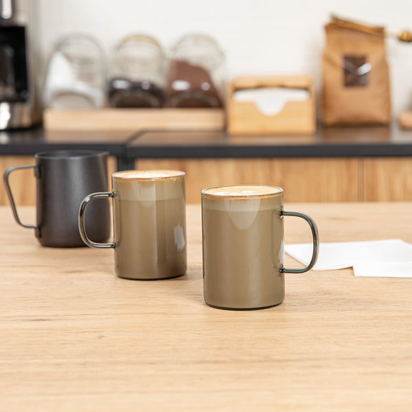 7 OZ GRAY GLASS COFFEE MUG - BOROSILICATE, WITH HANDLE
