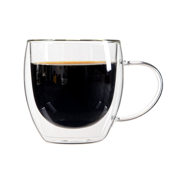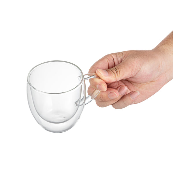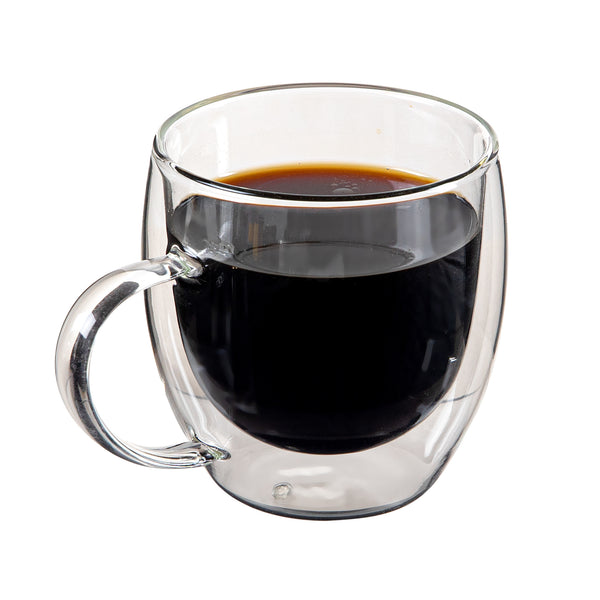 8 OZ GLASS COFFEE CUP - DOUBLE WALL, BOROSILICATE, WITH HANDLE