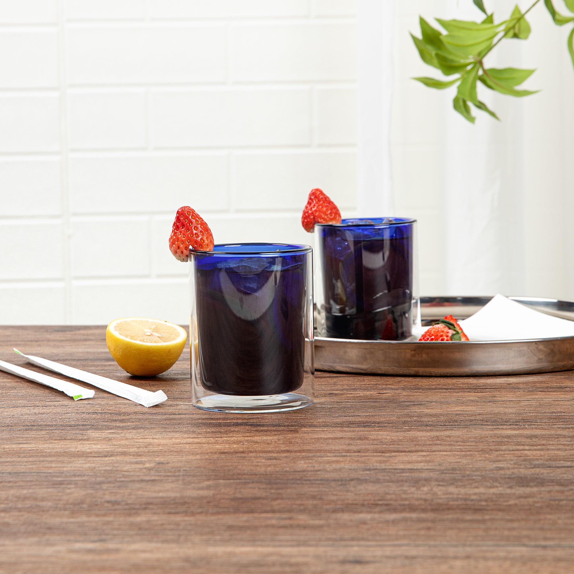 9 OZ BLUE GLASS TUMBLER - DOUBLE WALL, BOROSILICATE