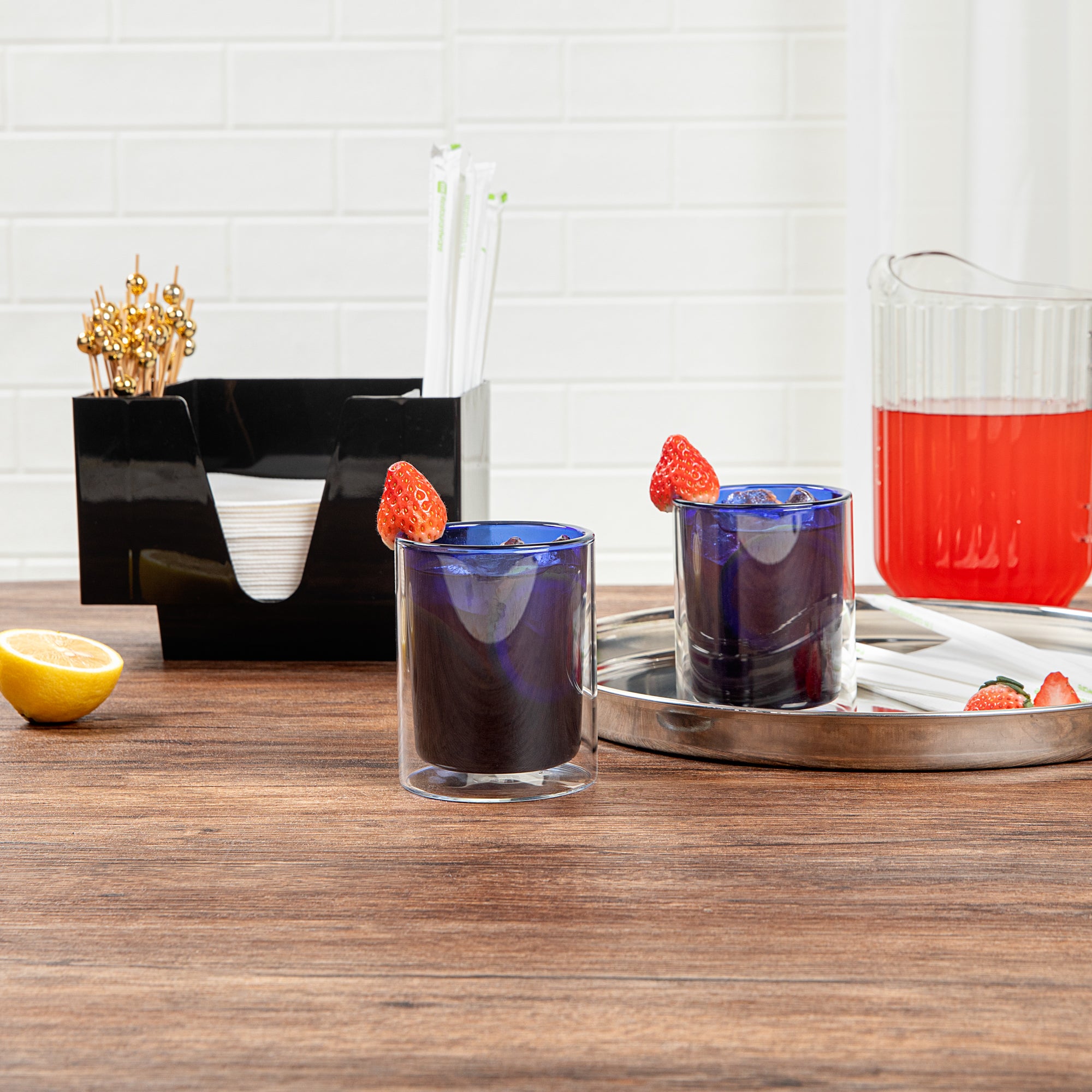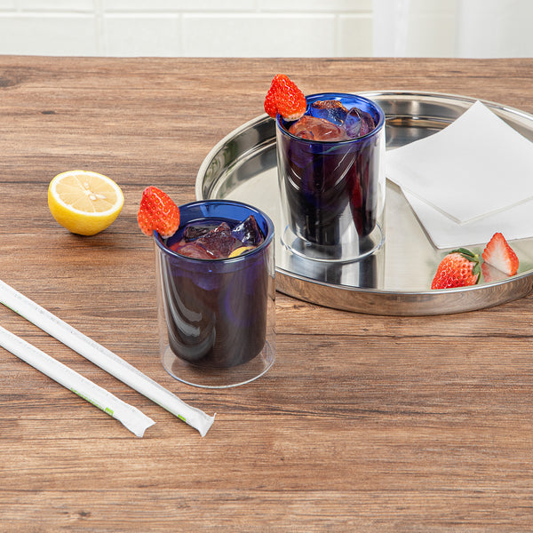 Keep beverages at the ideal temperature with insulated drinkware. The Forma Professional Insulated Borosilicate Glass Tumbler features a double-wall design that expertly retains heat for hot drinks and keeps cold beverages refreshingly chilled, ensuring optimal enjoyment for every sip. Crafted from premium borosilicate glass, this borosilicate glass tumbler offers exceptional durability, resisting thermal shock to safely serve both hot and cold drinks. With a convenient 8.84-ounce capacity and elegant blue tint, this cocktail glass enhances the presentation of juices, cocktails, and more, making it a versatile addition to any foodservice setting. Simplify your back-of-house operations with its microwave-safe design, allowing for quick reheating of beverages. Plus, the dishwasher-safe feature guarantees effortless cleaning, streamlining your service routine. Elevate your drink service with this microwave-safe tumbler, perfect for any café or restaurant. Each order includes 12 Forma Professional Insulated Borosilicate Glass Tumblers.