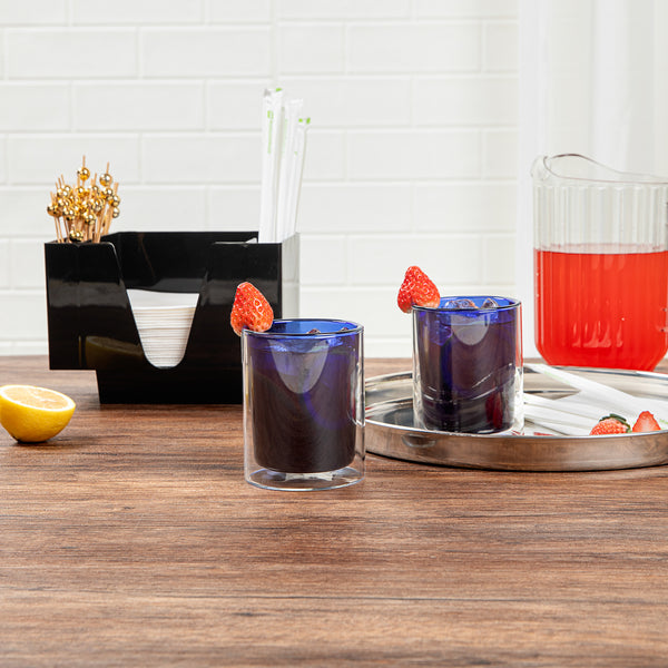 Keep beverages at the ideal temperature with insulated drinkware. The Forma Professional Insulated Borosilicate Glass Tumbler features a double-wall design that expertly retains heat for hot drinks and keeps cold beverages refreshingly chilled, ensuring optimal enjoyment for every sip. Crafted from premium borosilicate glass, this borosilicate glass tumbler offers exceptional durability, resisting thermal shock to safely serve both hot and cold drinks. With a convenient 8.84-ounce capacity and elegant blue tint, this cocktail glass enhances the presentation of juices, cocktails, and more, making it a versatile addition to any foodservice setting. Simplify your back-of-house operations with its microwave-safe design, allowing for quick reheating of beverages. Plus, the dishwasher-safe feature guarantees effortless cleaning, streamlining your service routine. Elevate your drink service with this microwave-safe tumbler, perfect for any café or restaurant. Each order includes 2 Forma Professional Insulated Borosilicate Glass Tumblers.