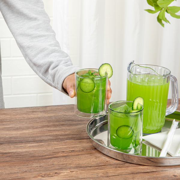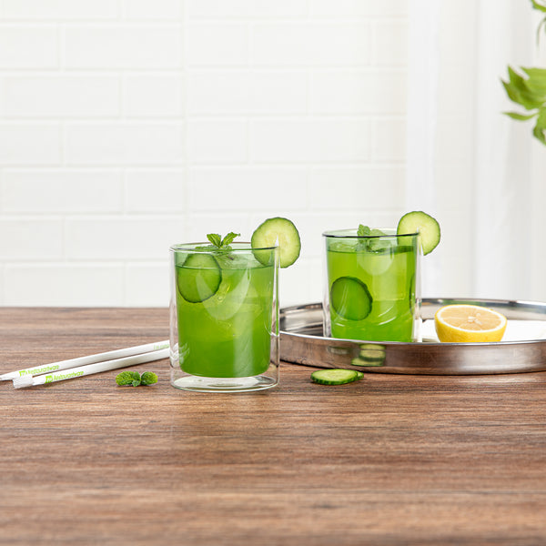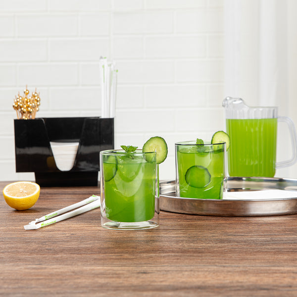 Enhance your beverage service with superior temperature control. The Forma Professional Insulated Glass Tumbler Set offers a double-wall borosilicate glass construction, providing unmatched insulation that keeps your beverages at optimal temperatures longer and prevents condensation for a comfortable grip. With a 8.84-ounce capacity, this glass tumbler set is perfect for serving everything from steaming hot coffees to refreshing chilled cocktails. Its vibrant green glass design adds a stylish touch to your table settings, enhancing the visual appeal and complementing various restaurant decors. Crafted from durable and heat-resistant borosilicate glass, it withstands everyday use, ensuring longevity and minimizing the risk of breakage. This insulated glass cup is microwave-safe, dishwasher-safe, and freezer-safe. Each order includes 2 Forma Professional Insulated Glass Tumbler Sets.