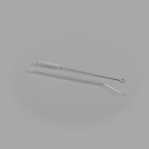 CLEAR BENT GLASS STRAW - BOROSILICATE, WITH BRUSH