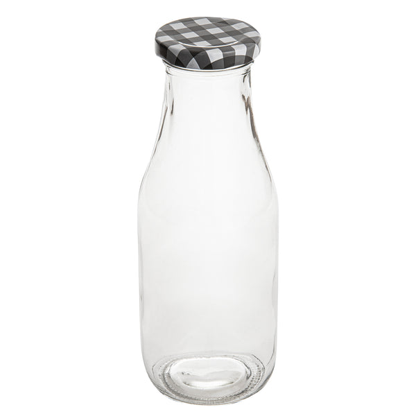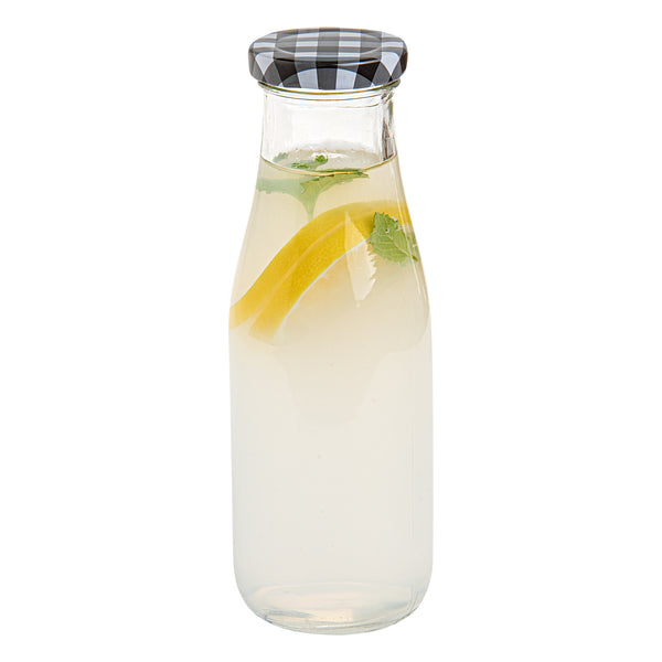 15 OZ GLASS BOTTLE - WITH BLACK PLAID LID