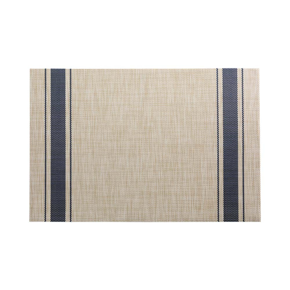 FRENCH COUNTRYSIDE KHAKI VINYL WOVEN PLACEMAT - WITH NAVY STRIPE