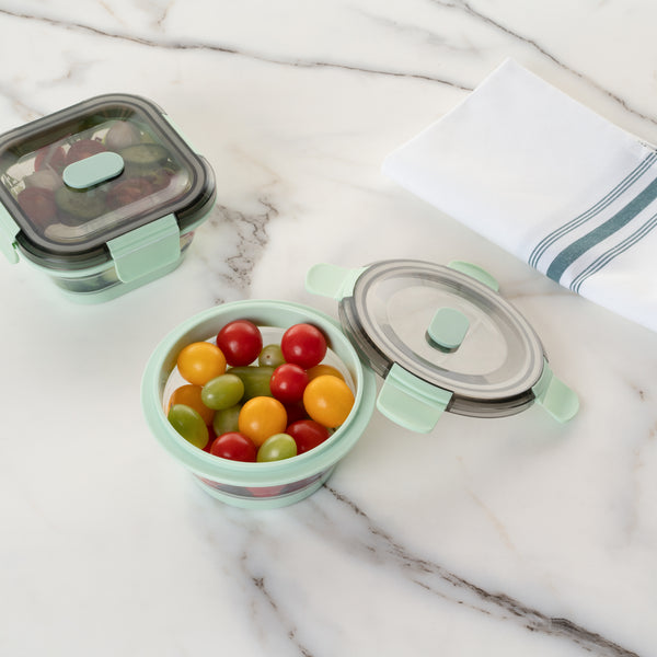 Embrace the clever storage design of these storage containers, as they are ingeniously collapsible when not in use, conserving cupboard space and contributing to a well-organized kitchen. Enjoy an uncluttered cooking space with these innovative containers.