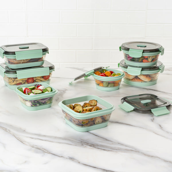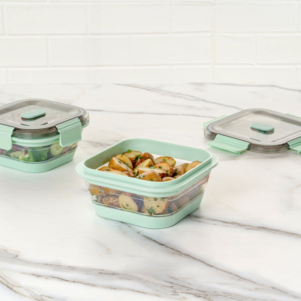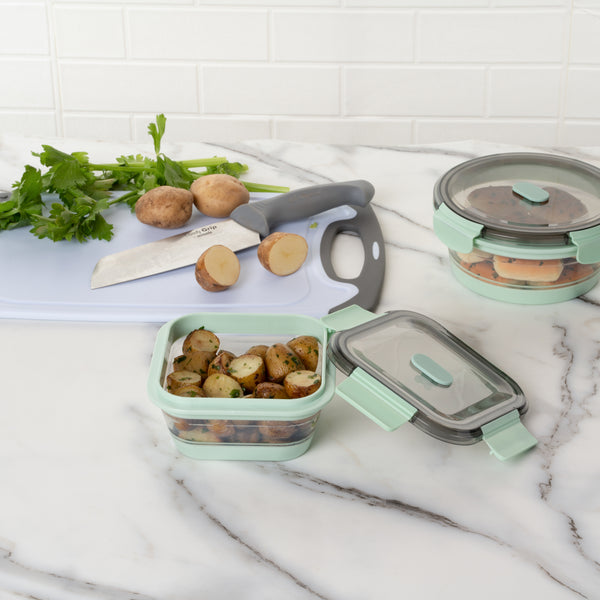 Embrace the clever storage design of these storage containers, as they are ingeniously collapsible when not in use, conserving cupboard space and contributing to a well-organized kitchen. Enjoy an uncluttered cooking space with these innovative containers.