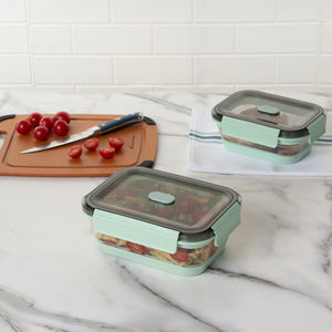 Fresh Hero 40 oz Green Plastic Airtight Food Storage Container - with Vented Lid, Collapsible - 8 1/4