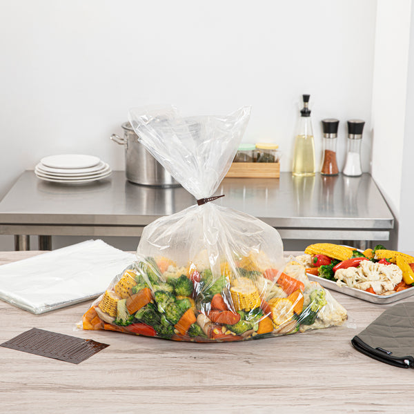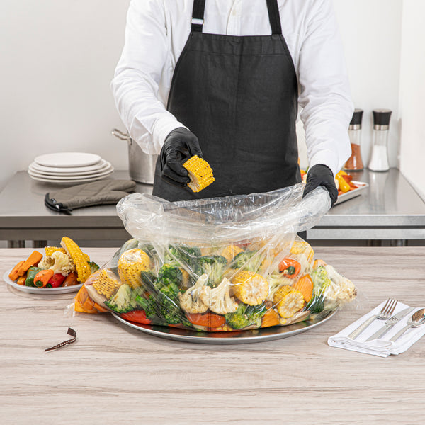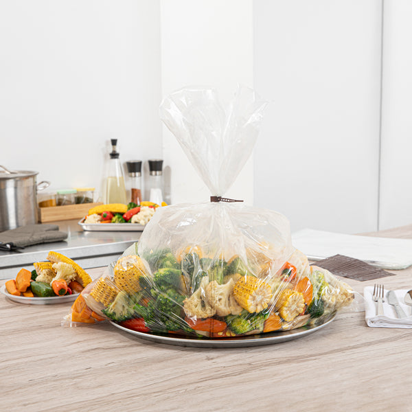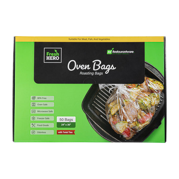 Securely prepare meals with heat-resistant oven bags. Fresh Hero Clear Plastic Oven Bags provide a durable solution for various cooking methods, thanks to their heavy-duty nylon construction that withstands high temperatures. These cooking bags are made from BPA-free plastic, ensuring a safe cooking environment by eliminating harmful chemicals. With included ties, these roasting bags effectively lock in moisture and flavor, resulting in fresh and delicious dishes every time. The generous dimensions of 24 inches by 30 inches accommodate large cuts of meat or multiple items, perfect for bulk cooking in catering services or restaurant kitchens. Their clear design allows for easy monitoring of food, ensuring perfect roasts without needing to open the bags and disrupt cooking temperatures. Embrace efficient cooking and food safety with these reliable oven bags. Each order includes 50 Fresh Hero Clear Plastic Oven Bags.