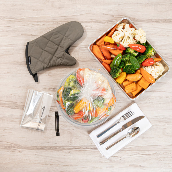 Ensure every dish is perfectly cooked with the Fresh Hero Moisture-Retaining Oven Bags. These oven bags, crafted from BPA-free plastic, prioritize food safety by eliminating harmful chemicals during high-temperature cooking. The included ties in these roasting bags provide a secure seal, effectively locking in moisture and flavor for succulent results. The clear design of these turkey roasting bags allows chefs to monitor their dishes effortlessly, ensuring perfect roasts without the need to open the bag and lose valuable heat. Measuring 14 inches by 17 inches, they accommodate a variety of dishes, from whole chickens to large roasts, offering versatility that meets diverse culinary needs. The heavy-duty construction withstands high cooking temperatures, making them a reliable choice for professional kitchens. Enhance your food preparation and cooking processes with these essential kitchen tools. Each order includes 5 Fresh Hero Moisture-Retaining Oven Bags.