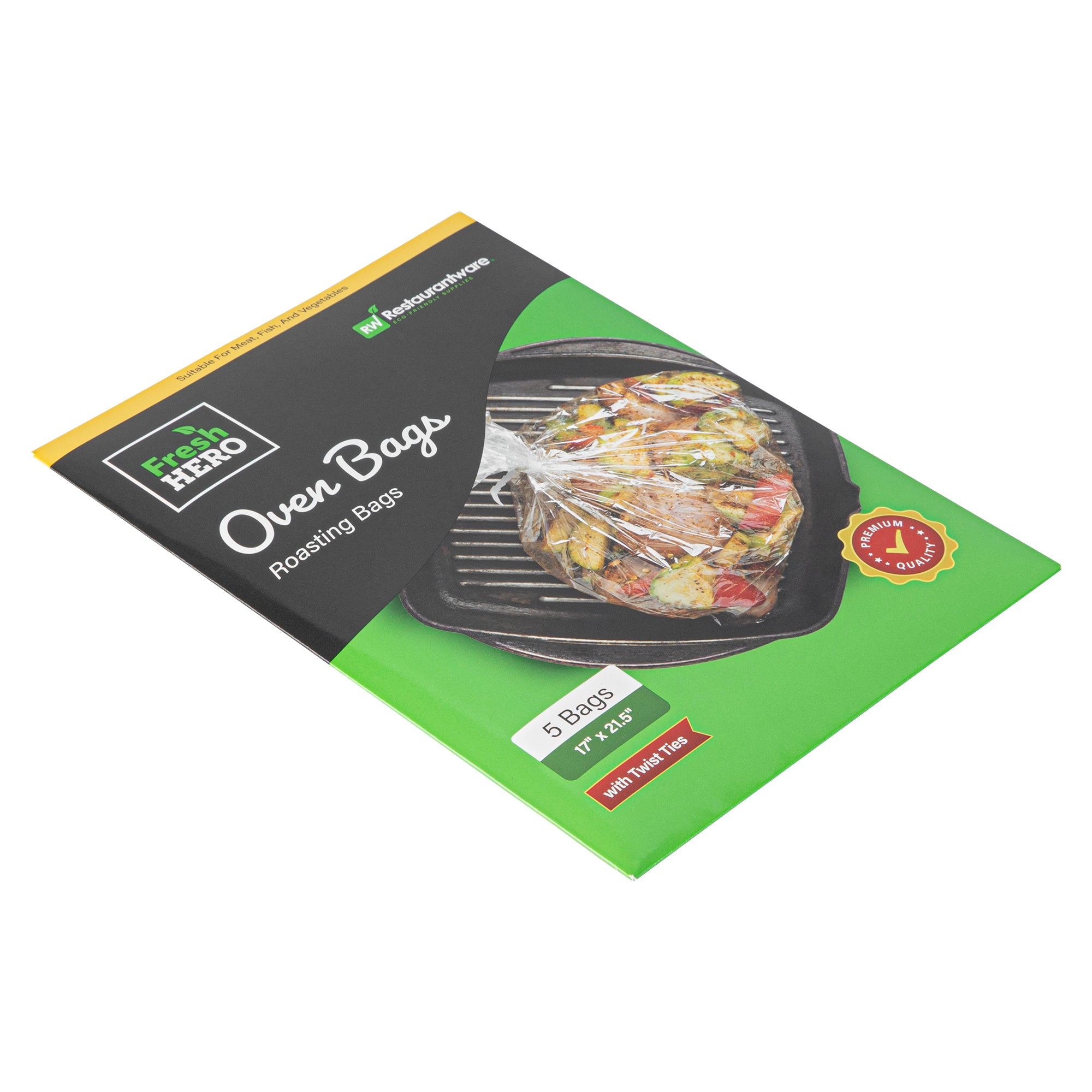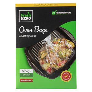 Secure flavor and freshness with moisture-retaining cooking solutions. Fresh Hero Moisture-Retaining Roasting Bags are designed with included ties that lock in moisture and flavor, ensuring consistently delicious dishes. Their BPA-free plastic construction eliminates the risk of harmful chemicals, providing a safe option for meal preparation in commercial kitchens. With generous dimensions of 21.5 inches by 17 inches, these roasting bags easily accommodate large turkeys or multiple items, making them ideal for catering services that require bulk cooking solutions. The clear design allows chefs to monitor roasts without opening the bag, reducing heat loss and ensuring even cooking. Their heavy-duty design withstands high cooking temperatures, making them reliable high-temperature oven bags for any foodservice operation. Each order includes 200 Fresh Hero Moisture-Retaining Roasting Bags.