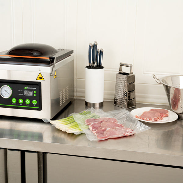 Our chamber vacuum sealer bags and pouches can be sealed with our matching Fresh Hero vacuum sealer to lock in the freshness of your food. Keep food fresher for longer!