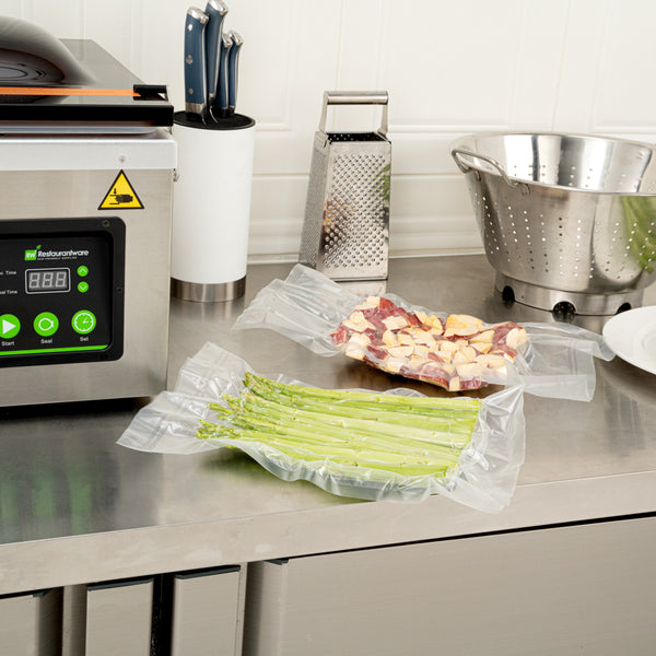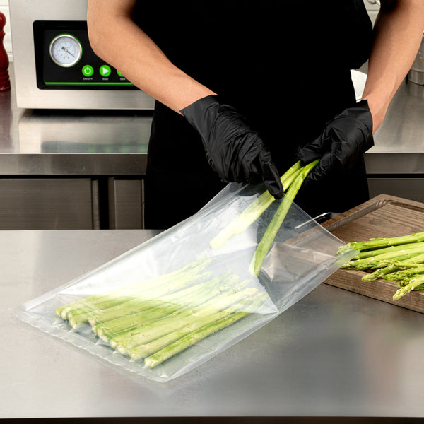 Easily store food for later use with our Fresh Hero Clear Plastic Vacuum Packaging Bags. These meal seal bags can be sealed with our compatible Fresh Hero vacuum packaging machine (SKU: RWM0156S or RWM0157). Designed with a 3 mil thickness, these food sealer bags can withstand damage to avoid leaks or spills while in storage. Made from high-quality polyethylene and nylon, these food storage bags are BPA-free to ensure foods remain clear of unwanted substances. Ideal for sous vide cooking, these food saver vacuum bags can be boiled. These food vacuum bags are freezable and microwavable to conveniently store and reheat prepped foods. Measuring 16 inches in length by 12 inches in width, these vacuum storage bags are ideal for holding all types of ingredients. Sold in a 1000 count box. Fresh Hero vacuum packaging machines are available and sold separately.