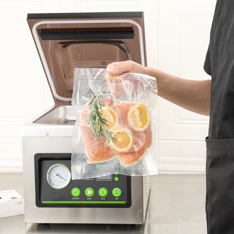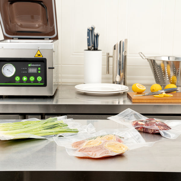 Our chamber vacuum sealer bags and pouches can be sealed with our matching Fresh Hero vacuum sealer to lock in the freshness of your food. Keep food fresher for longer!