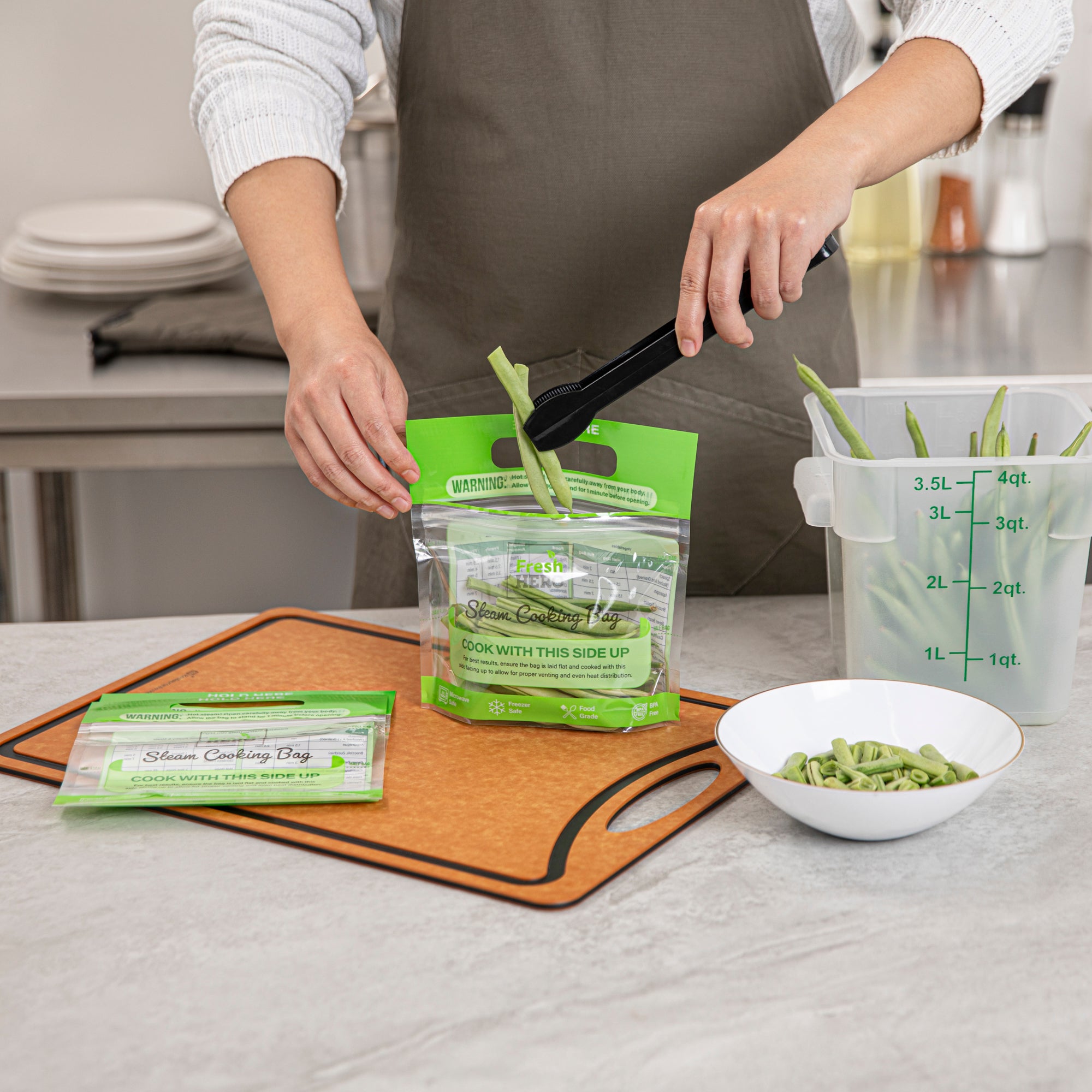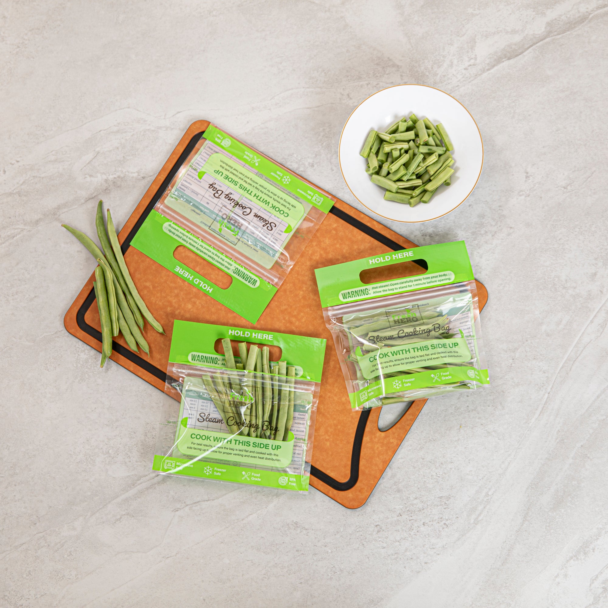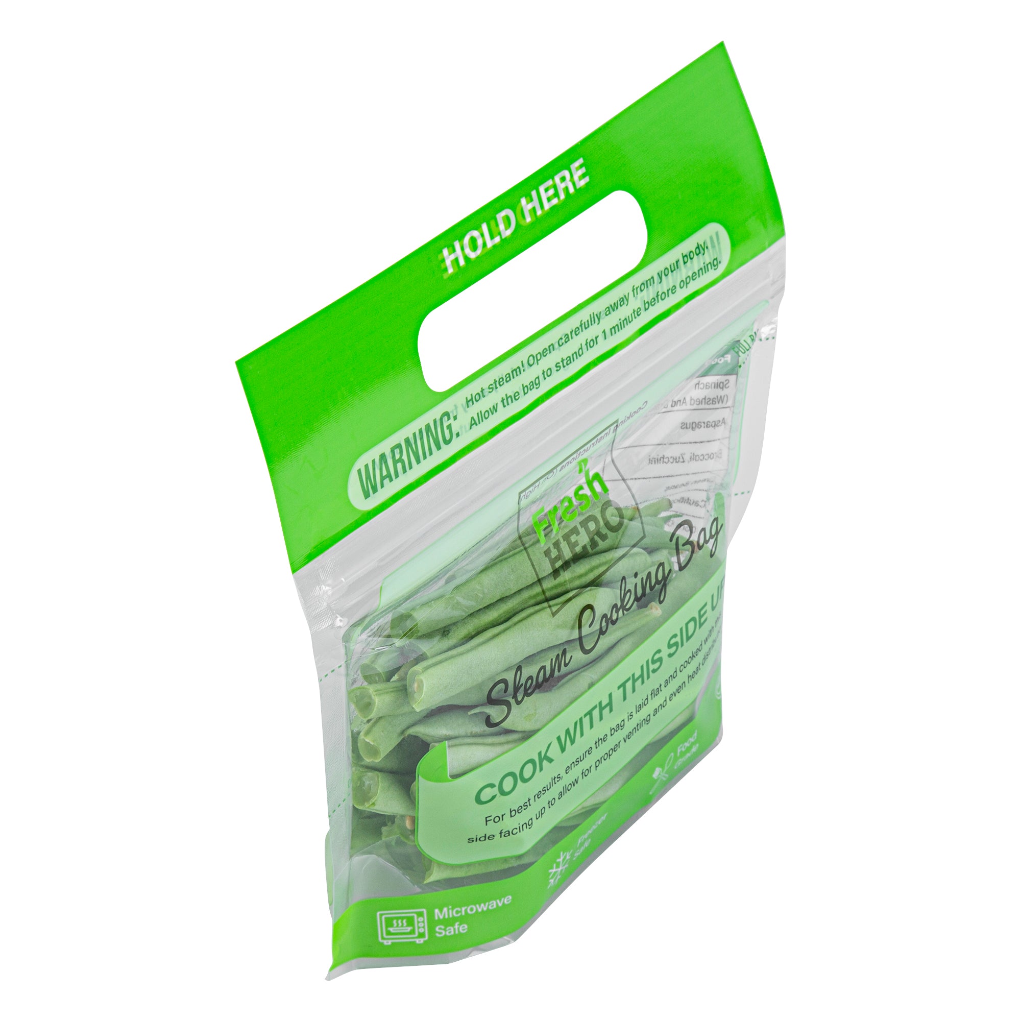 Streamline your kitchen operations with versatile microwave steam bags. Fresh Hero Plastic Microwave Steam Bags, crafted from BPA-free plastic, ensure safe cooking for all foods, eliminating harmful chemicals and aligning with health-conscious foodservice practices. These steam cooking bags are compatible with both microwave and oven applications, allowing caterers and quick-service restaurants to employ versatile cooking methods that save time and enhance efficiency. The 7.5 x 7.5-inch size is perfect for individual portions, reducing waste and controlling portion sizes, especially useful for meal prep businesses. With their green color, these disposable steam pouches add a visually appealing touch to takeout and delivery services. Plus, their recyclable and disposable nature ensures an eco-friendly cleanup, making them an ideal choice for sustainable operations. Each order includes 500 Fresh Hero Plastic Microwave Steam Bags.