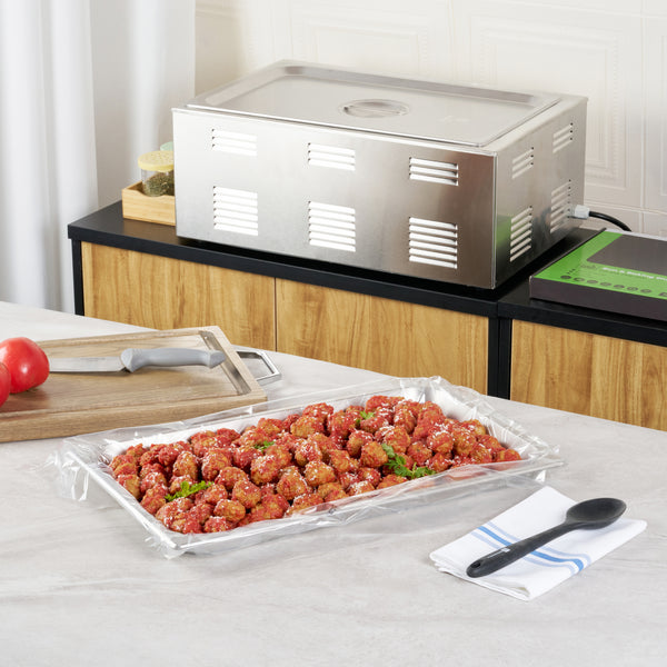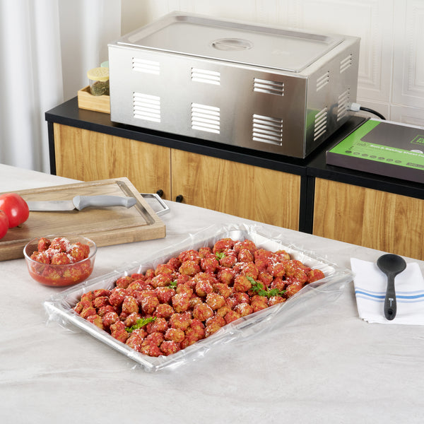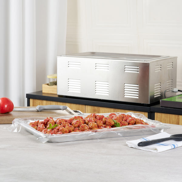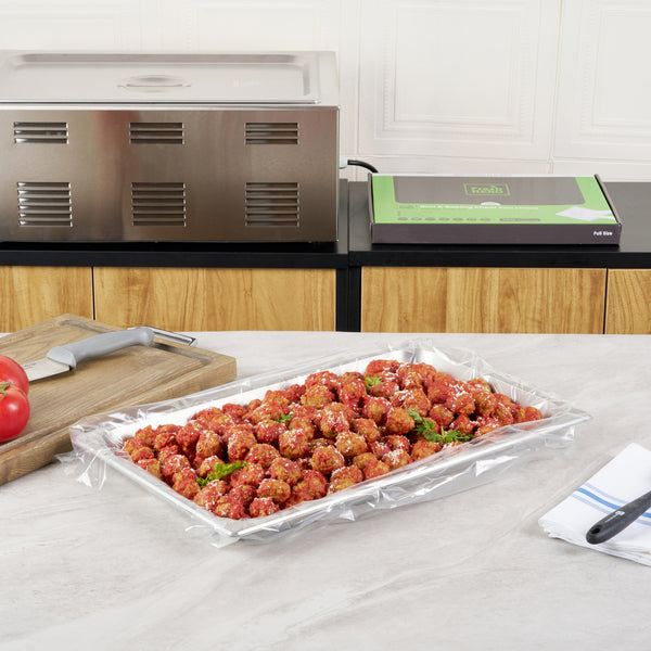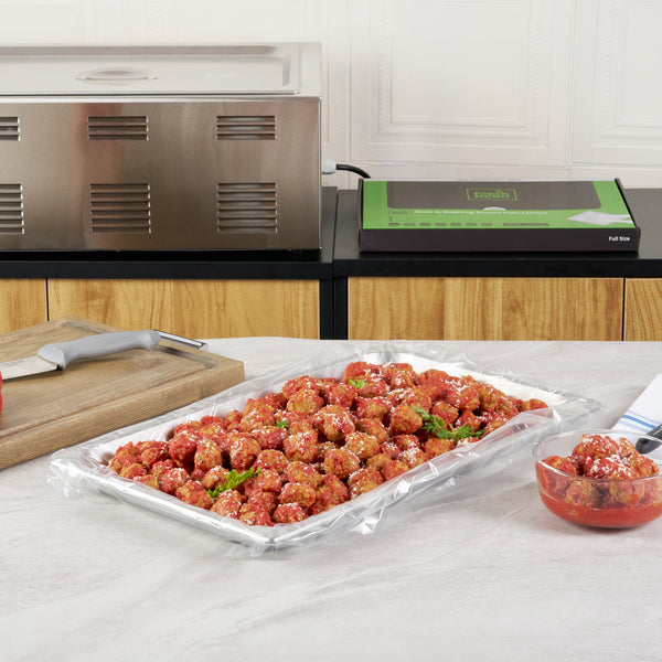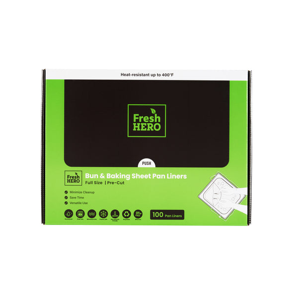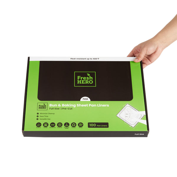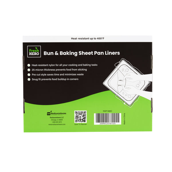 Enhance your bakery’s efficiency and product quality with these versatile liners. Fresh Hero Contour-Fit Full-Size Sheet Pan Liners ensure your baked goods maintain their shape and integrity, thanks to their non-stick surface that prevents moisture loss and increases food yield. With their innovative contour-fit design, these liners prevent food from getting “lost” in corners, making them ideal full-size sheet pan liners for commercial kitchens. Crafted from durable nylon material, they withstand temperatures, offering exceptional performance as disposable oven liners. The moisture-locking technology further improves food quality by maintaining freshness and preventing contamination. Additionally, these non-stick pan liners eliminate scrubbing, ensuring quick and easy clean-up. Invest in these reliable, freezer-safe, and microwave-safe liners to streamline operations and reduce costs. Each order includes 100 Fresh Hero Contour-Fit Full-Size Sheet Pan Liners.