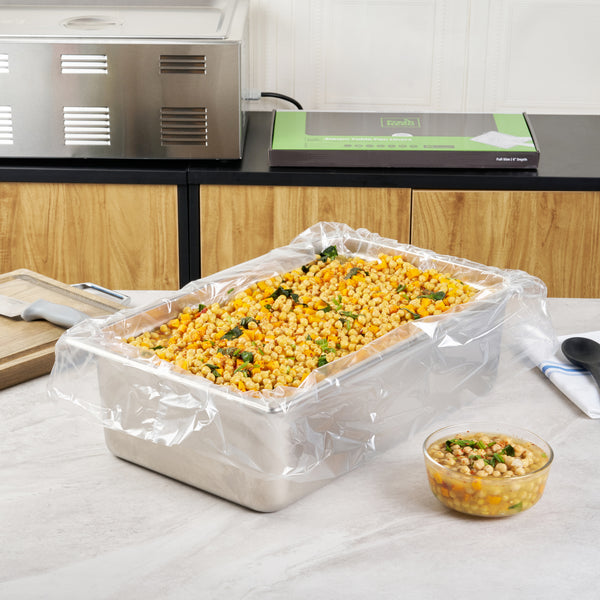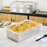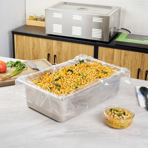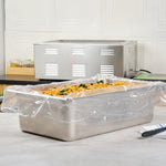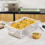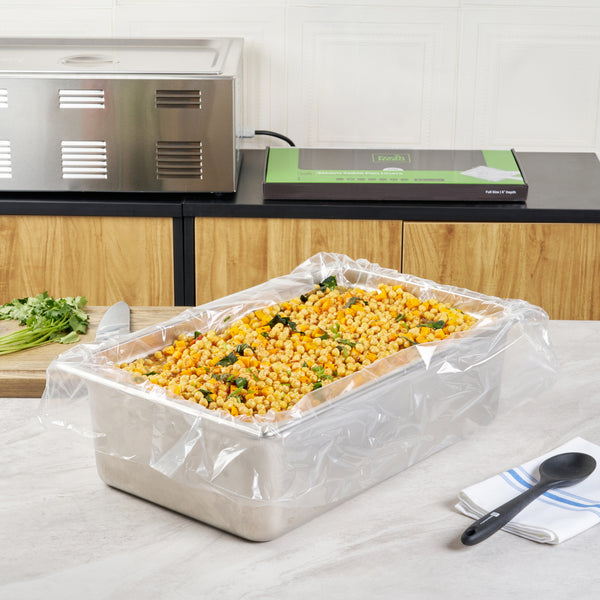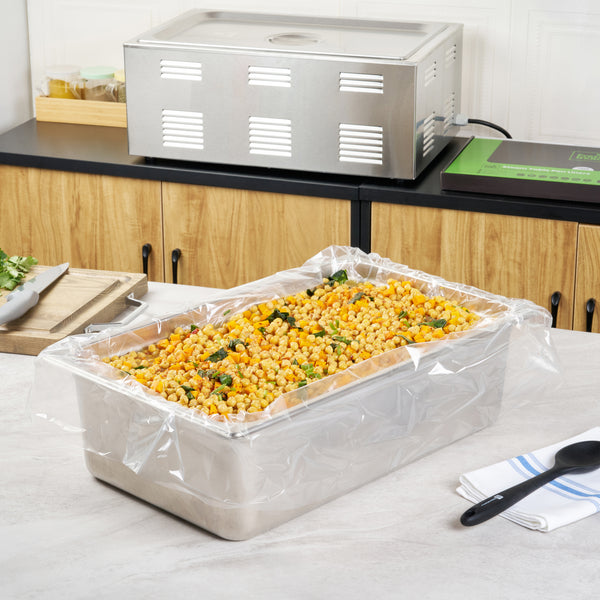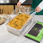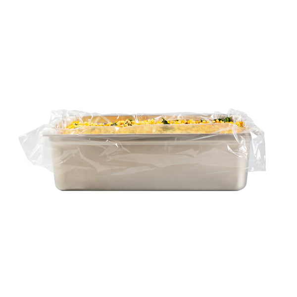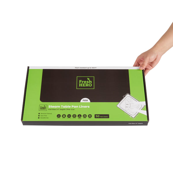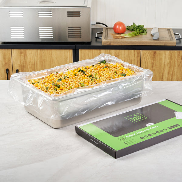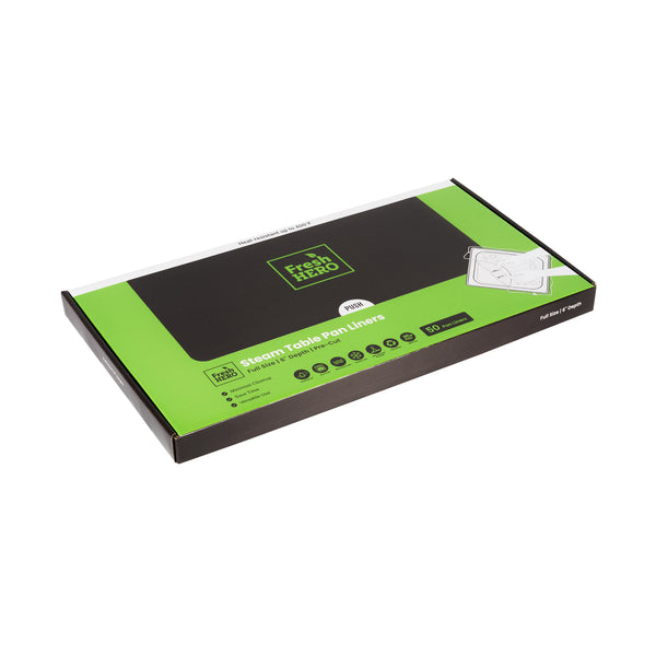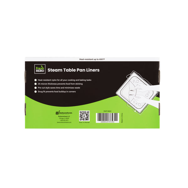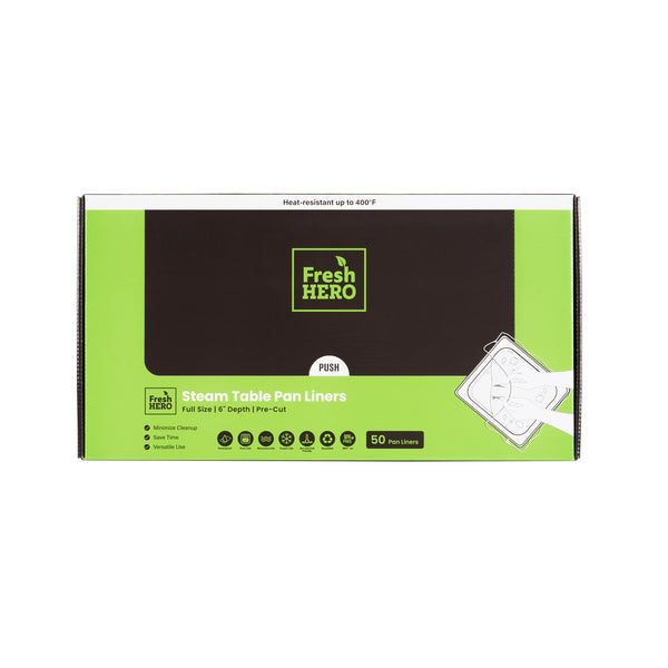Streamline kitchen cleanup with these efficient liners. Fresh Hero Contour-Fit Steam Table Pan Liners are designed with Contour-Fit® technology, eliminating food loss in corners and ensuring every inch of your 34-inch long pans is utilized. As oven-safe pan liners, they are perfect for high-temperature applications, maintaining moisture and enhancing food quality throughout cooking. These durable, disposable pan liners save labor and time by eliminating the need for scrubbing, thus accelerating kitchen operations and cutting down on labor costs. In addition, they increase food yield by preventing food from sticking to the surface, which reduces ingredient waste and helps control expenses. Crafted from clear plastic, these liners also eliminate the risk of surface contamination from pans, ensuring food safety and enhancing operational efficiency. Simplify your foodservice processes and improve food presentation with these versatile steam table pan liners. Each order includes 50 Fresh Hero Contour-Fit Steam Table Pan Liners.