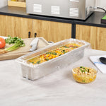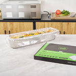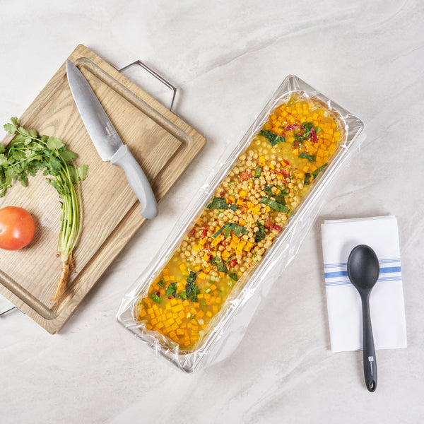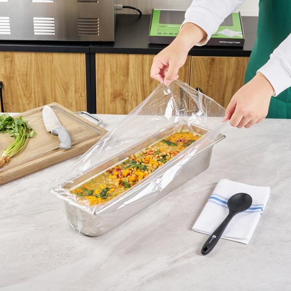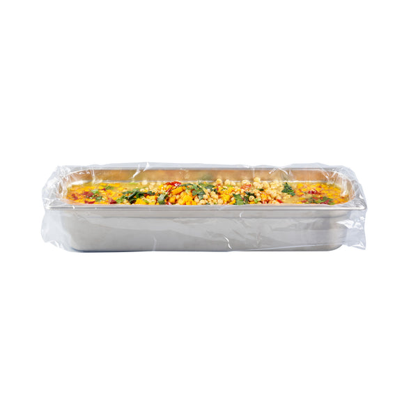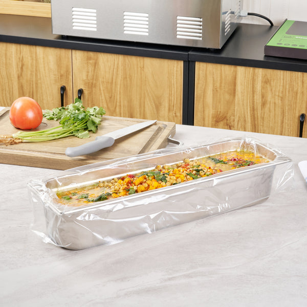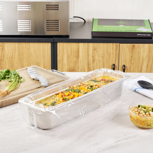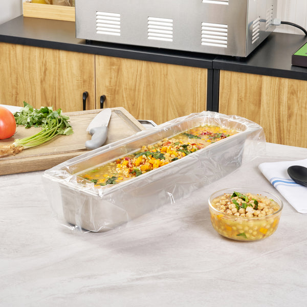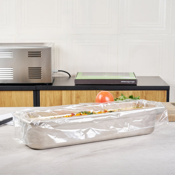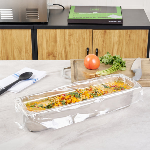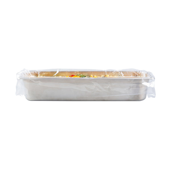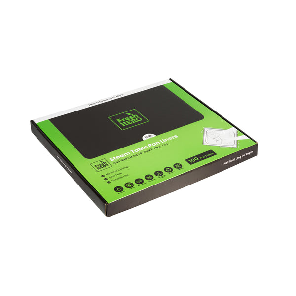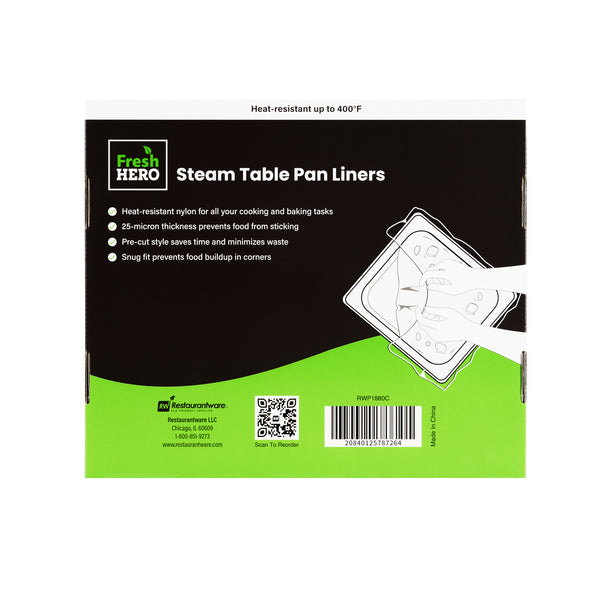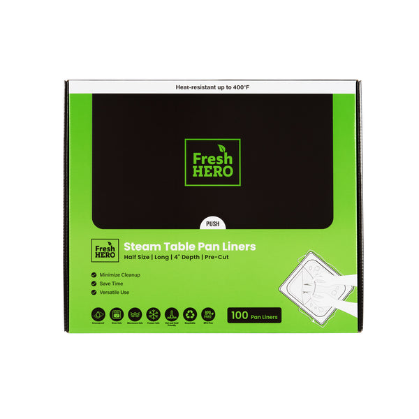 Simplify cleanup and enhance food quality with Fresh Hero Contour-Fit Steam Table Pan Liners. These steam table pan liners feature an innovative Contour-Fit® design, ensuring that food doesn't get lost in liner corners, maximizing food yield. Made from durable plastic, they are greaseproof, eliminating the need for scrubbing and significantly saving labor in busy kitchens. With an oven-safe feature, these liners enhance food safety by preventing surface contamination and maintaining the quality of your dishes. At 27 inches in length and 11 inches in width, they fit seamlessly into steam tables, making them indispensable for catering events or buffet setups. These disposable cooking liners not only make cleanup quick and easy but also help save water, reducing operating costs. Experience the convenience and efficiency of these oven-safe pan liners, ideal for keeping your foodservice operations running smoothly. Each order includes 100 Fresh Hero Contour-Fit Steam Table Pan Liners.