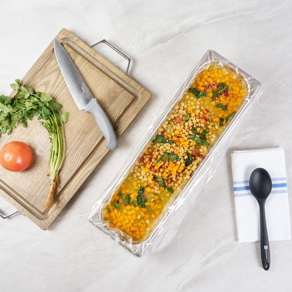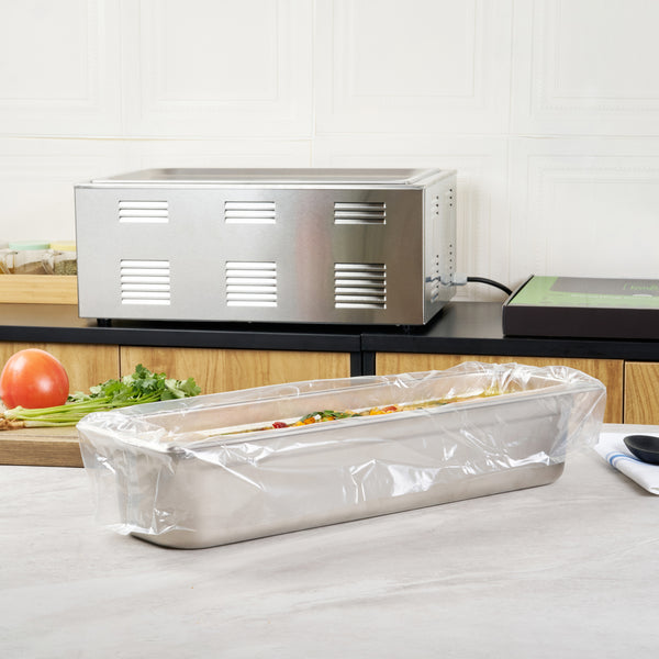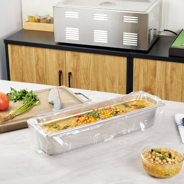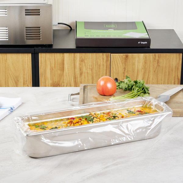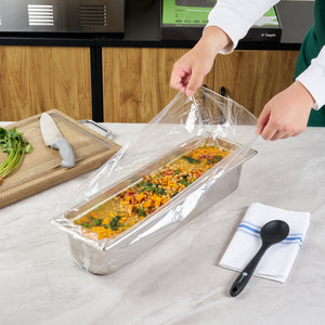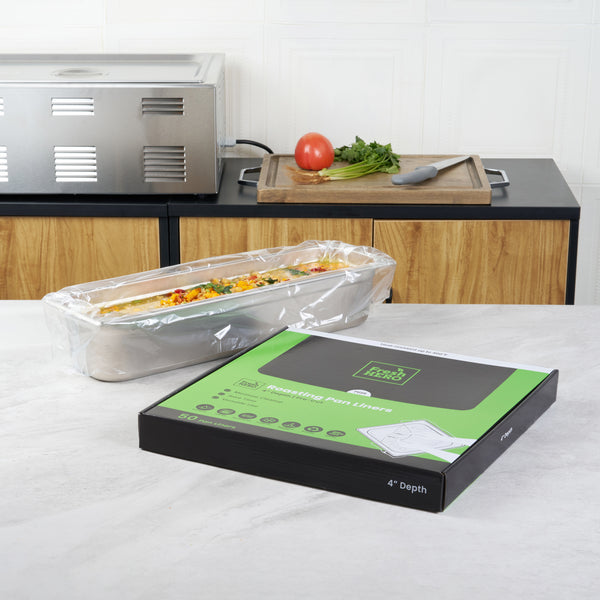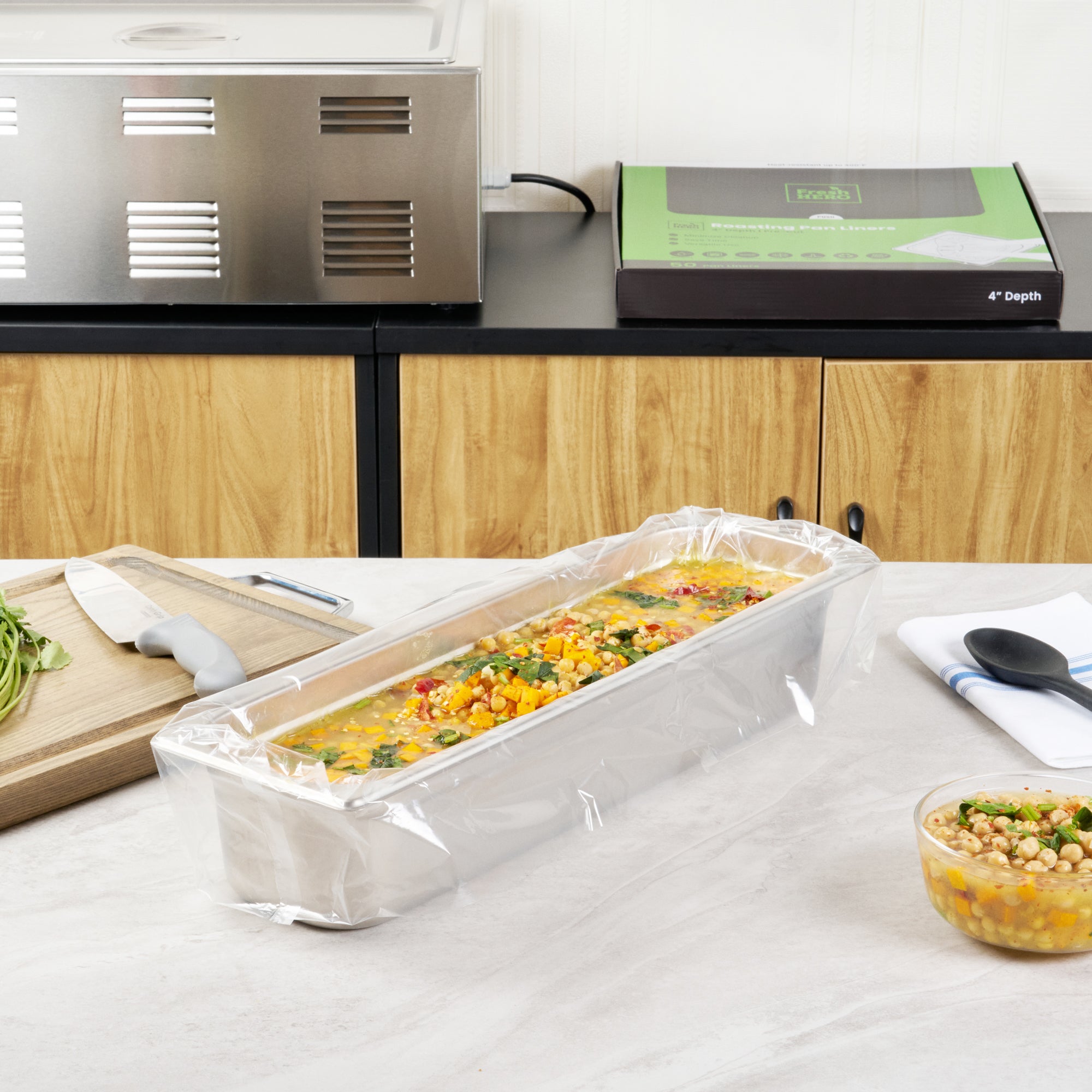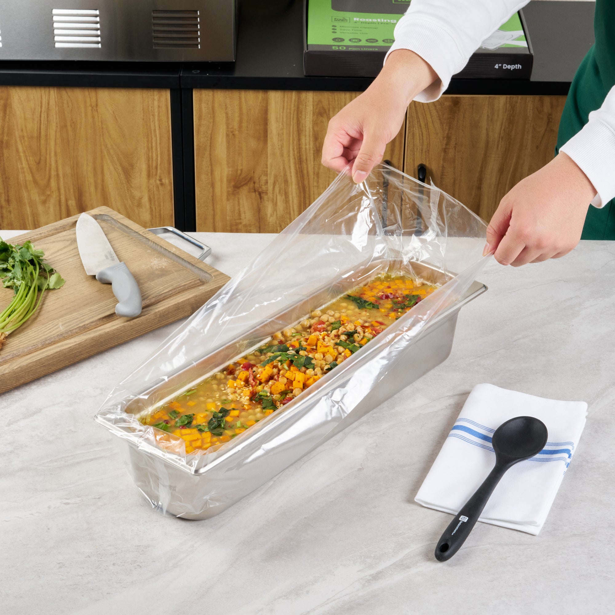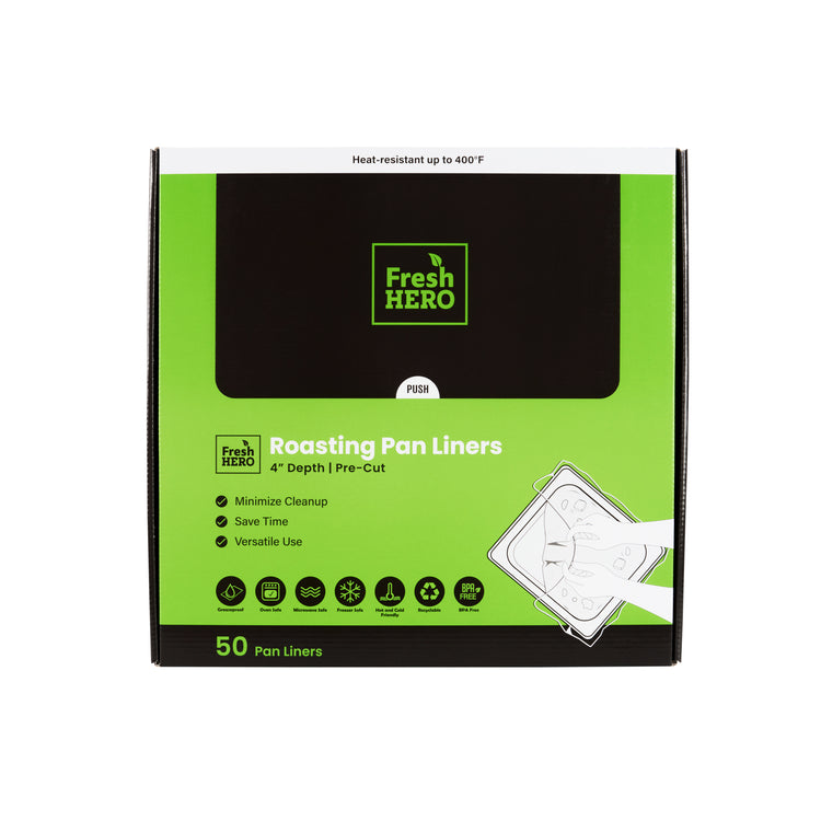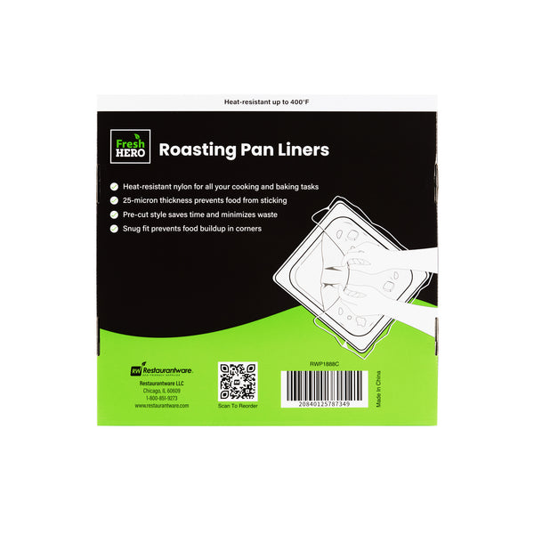 Simplify your kitchen cleanup with disposable turkey roasting liners. Fresh Hero Contour-Fit Turkey Roasting Liners offer a 42-inch by 14-inch size that fits large roasts and turkeys, ensuring ample space for all your cooking needs. Made from high-quality nylon, these clear roasting bags are durable and resist tearing, even under high temperatures, maintaining their integrity throughout the cooking process. The innovative contour-fit design prevents food from getting lost in corners, enhancing food yield and preventing waste. These non-stick roasting liners boast a moisture-locking feature that preserves freshness and quality, crucial for maintaining the best taste and texture in large-scale meal preparations. Designed for quick cleanup, these liners save labor and reduce costs by eliminating the need for scrubbing roasting pans, making them an indispensable tool in any commercial kitchen. Each order includes 50 Fresh Hero Contour-Fit Turkey Roasting Liners.