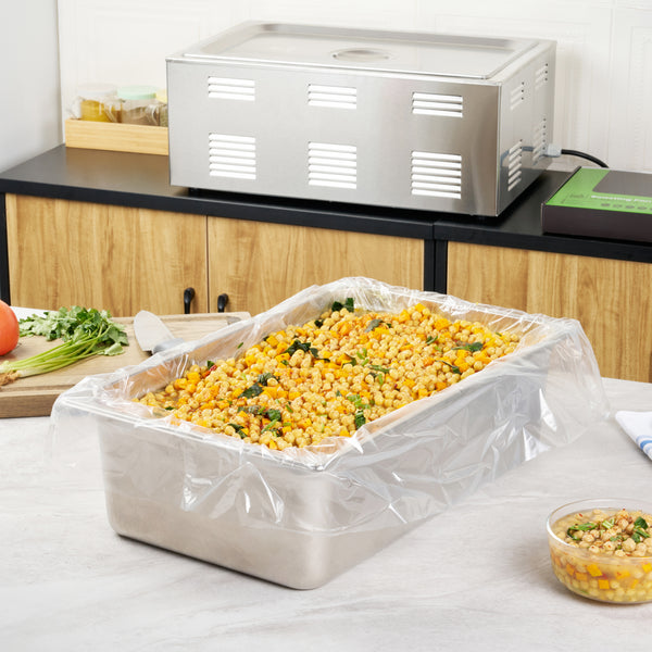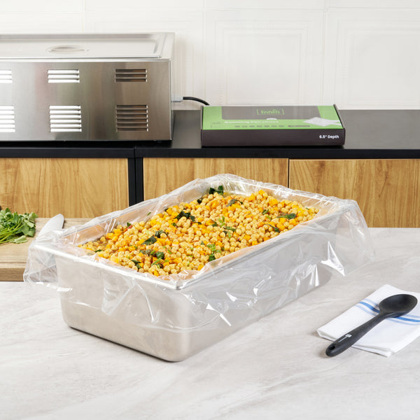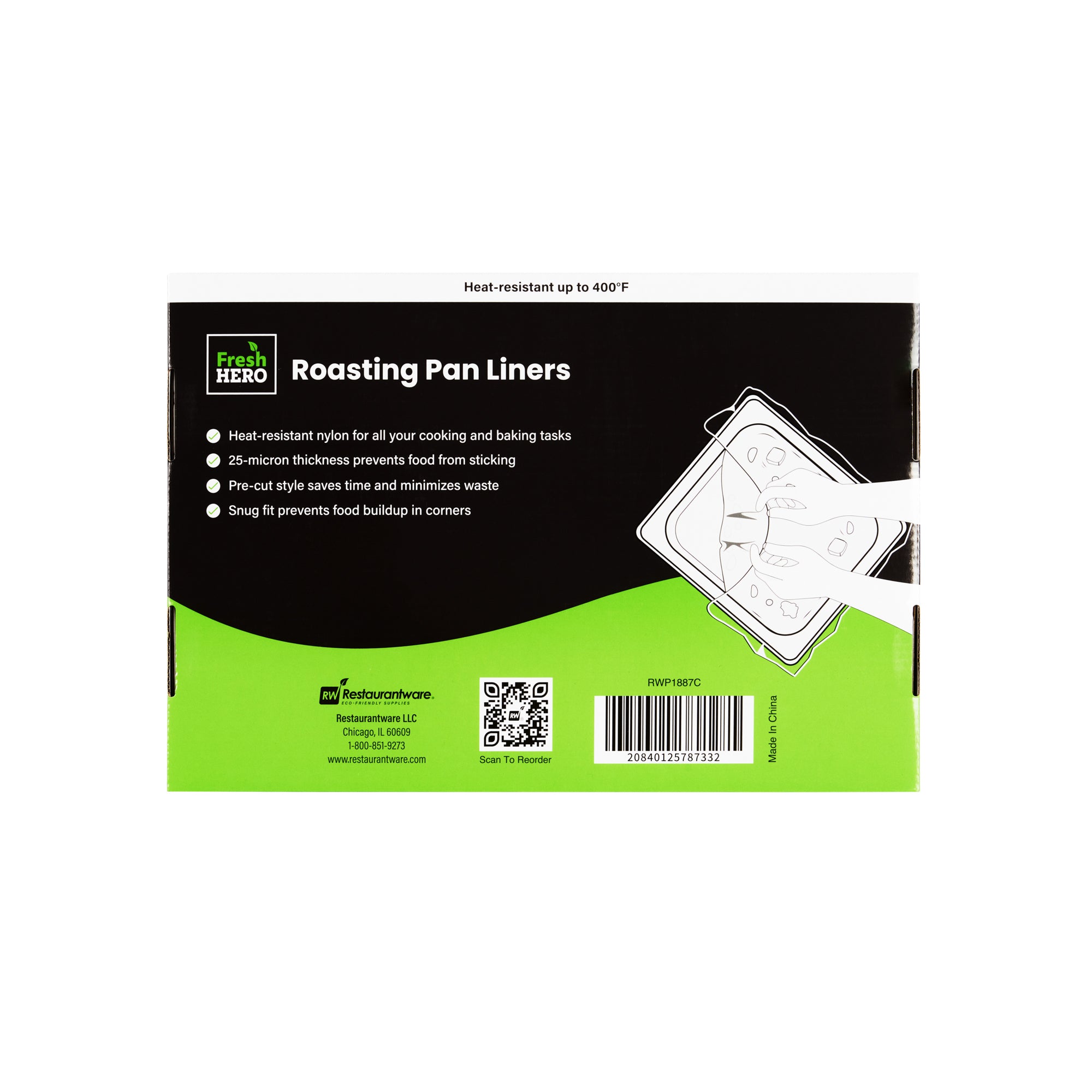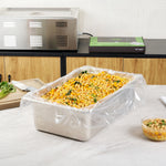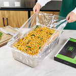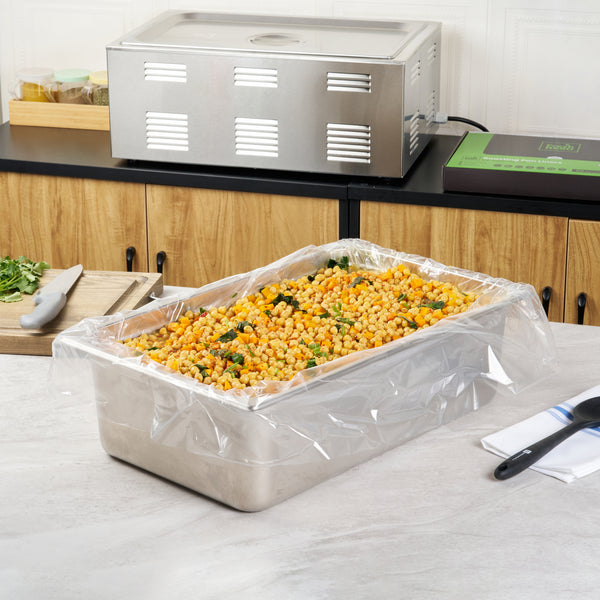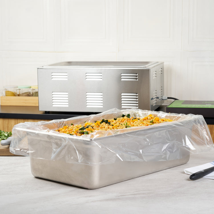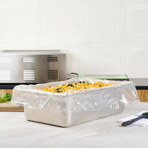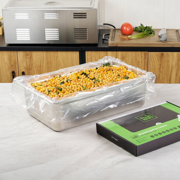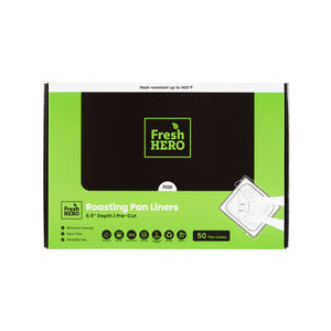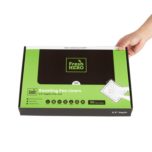 Streamline your kitchen operations with disposable roasting liners. Fresh Hero Non-Stick Disposable Roasting Liners feature contour-fit technology for streamlined pan coverage, reducing waste and ensuring even cooking. Measuring 38 inches by 18 inches, these oven-safe pan liners accommodate large roasting pans, making them ideal for high-volume establishments. Made from nylon, these liners withstand temperatures, guaranteeing safe cooking without the risk of melting. Their moisture-locking design improves food quality by preventing drying, essential for maintaining succulent roast meats and vegetables. These nylon pan liners eliminate scrubbing, saving labor and time during cleanup, which is crucial for catering services and buffet restaurants. With each order, you can effortlessly enhance food safety by eliminating surface contamination, while also reducing water usage and overall operating costs. Each order includes 50 Fresh Hero Non-Stick Disposable Roasting Liners.