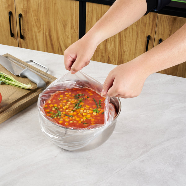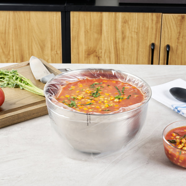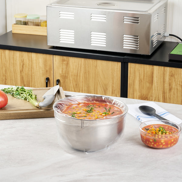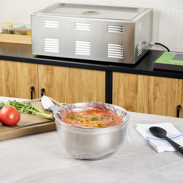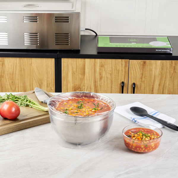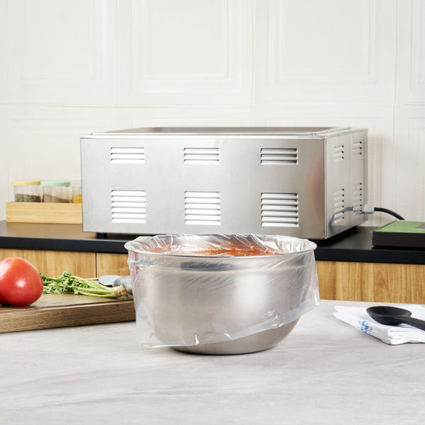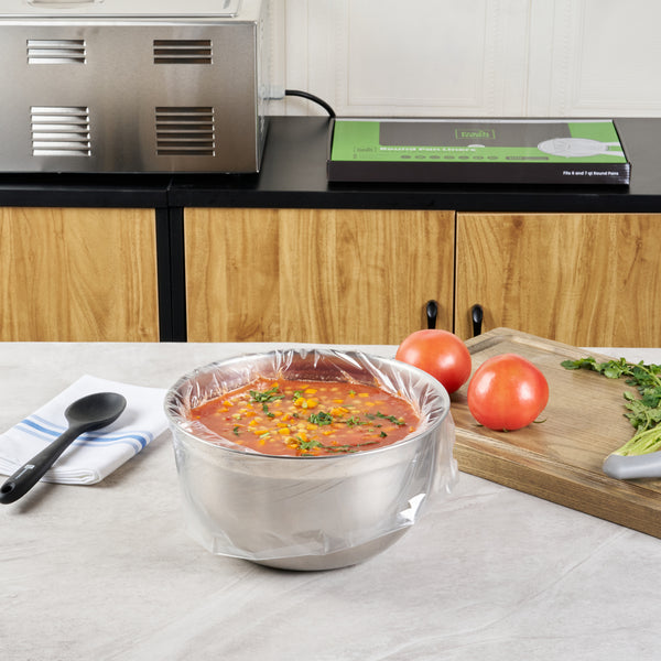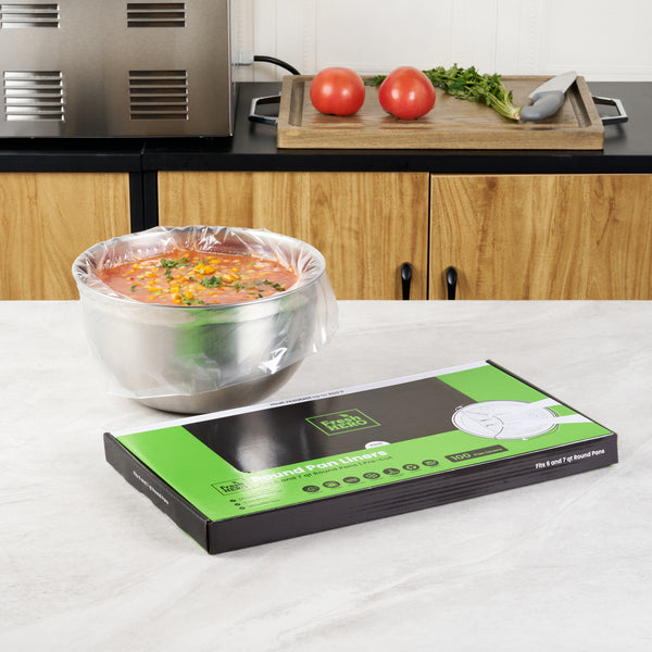 Ensure efficient cleanup with our Fresh Hero Contour-Fit Disposable Pan Liners. These disposable pan liners are expertly designed to fit 6 and 7-quart round pans, providing a snug fit that prevents leaks and spills during cooking. Made from durable nylon material, they withstand high cooking temperatures, eliminating the risk of tearing or melting for seamless oven-safe pan liners performance. The innovative contour-fit feature prevents food from getting lost in liner corners, enhancing food yield and reducing waste, making them ideal as round chafing dish liners. Measuring 15 inches by 15 inches, these liners offer ample coverage for deep pans, accommodating a variety of recipes and cooking methods. Their moisture-locking capabilities improve food quality by preventing dryness, while the disposable design simplifies cleanup, saving labor and time in busy kitchens. Each order includes 100 Fresh Hero Contour-Fit Disposable Pan Liners.