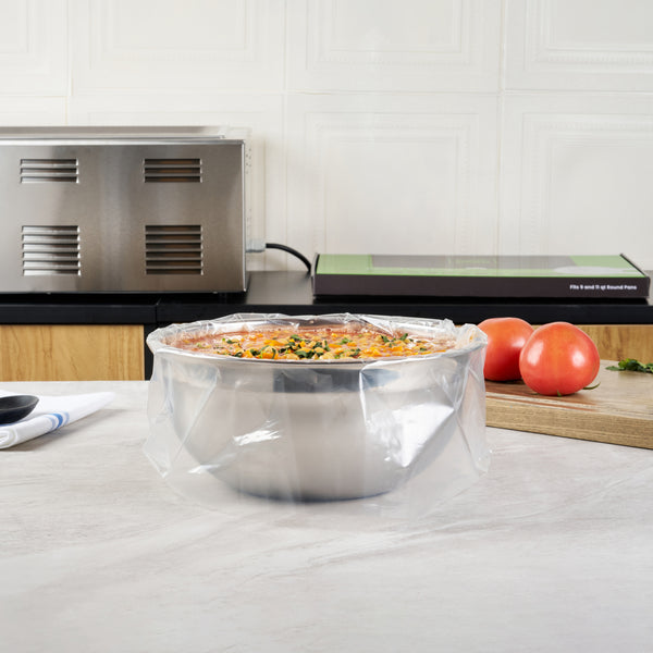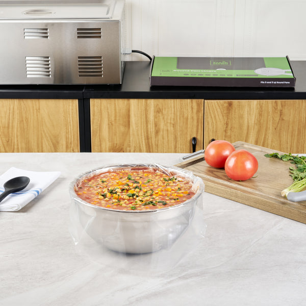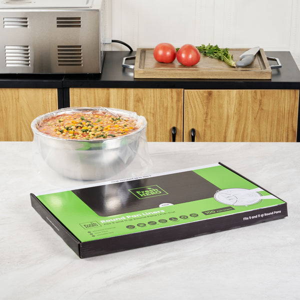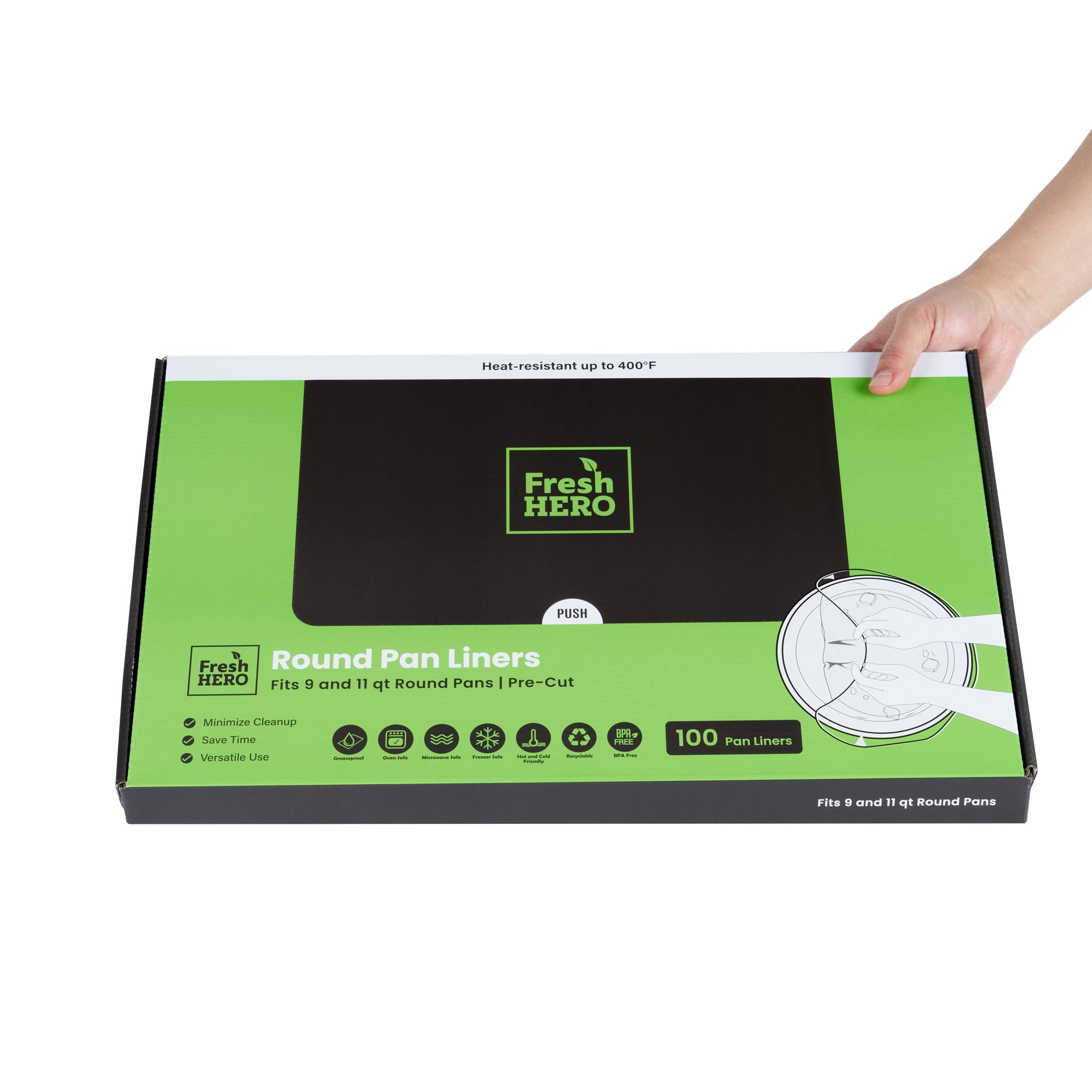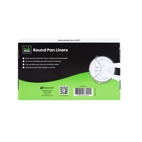 Streamline your kitchen operations with versatile disposable pan liners. Fresh Hero Non-Stick Disposable Pan Liners feature a contour-fit design that prevents food waste by keeping ingredients from getting lost in liner corners, making them perfect for efficient food preparation. Designed to withstand high heat, these oven-safe pan liners maintain their integrity in baking settings, ensuring consistent cooking results. With moisture-locking technology, these round baking liners preserve food quality by preventing moisture loss, making them ideal for both cooking and storage. Measuring 18 inches by 20 inches, they fit 9 and 11-quart round pans, providing flexibility in various culinary settings. Enhance your kitchen efficiency with these essential tools, and enjoy hassle-free cleanup. Each order includes 100 Fresh Hero Non-Stick Disposable Pan Liners.
