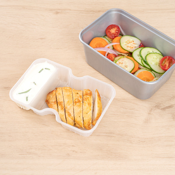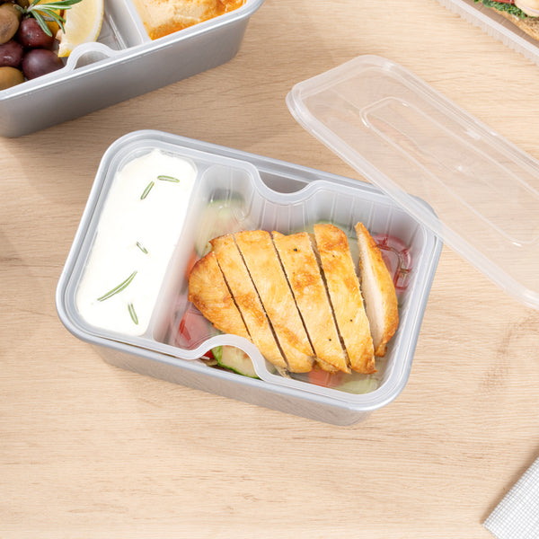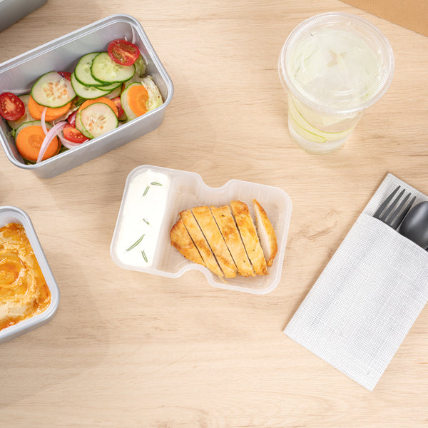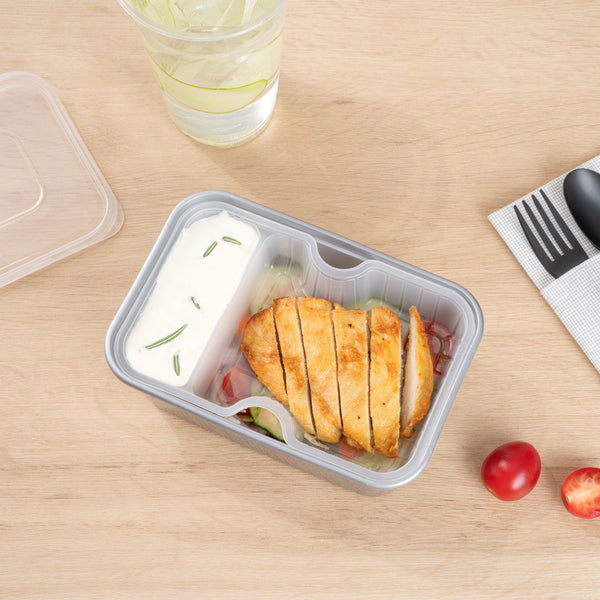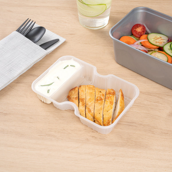 These compartment trays are compatible with our food containers to easily add more sides, snacks, sauces, or desserts to your meals. Plus, our take out containers securely lock in food, so you don’t have to worry about messy spills.