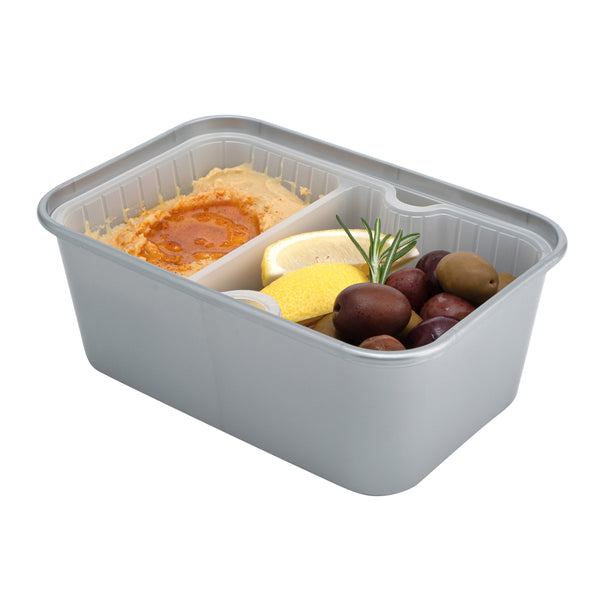 - 2 Compartments provide space to divide sides or snacks from main dishes