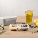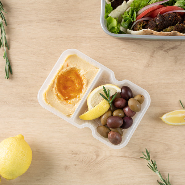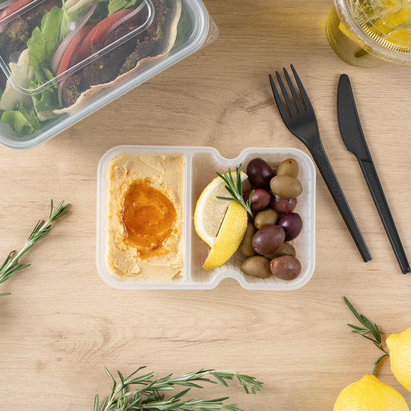 These compartment trays are compatible with our food containers to easily add more sides, snacks, sauces, or desserts to your meals. Plus, our take out containers securely lock in food, so you don’t have to worry about messy spills.