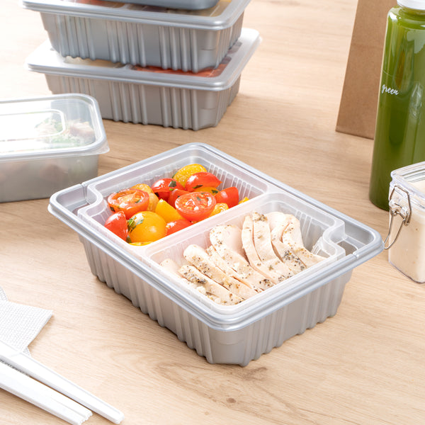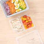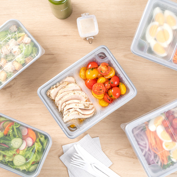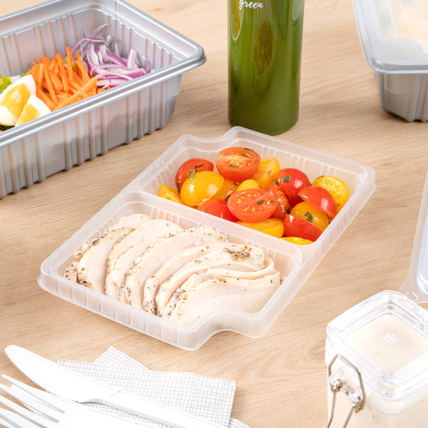 These compartment trays are compatible with our food containers to easily add more sides, snacks, sauces, or desserts to your meals. Plus, our take out containers securely lock in food, so you don’t have to worry about messy spills.