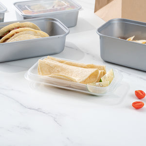 These compartment trays are compatible with our food containers to easily add more sides, snacks, sauces, or desserts to your meals. Plus, our take out containers securely lock in food, so you don’t have to worry about messy spills.