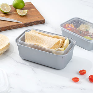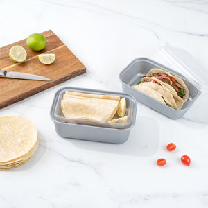 The stackable design of these lunch trays saves space in your kitchen for effortless organization. No more messy cabinets!