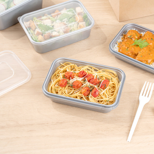 A number of these meal prep containers have coordinating inserts available, allowing you to create your own packaging solution and store numerous menu items in the same container. Our selection of food containers comes in a clear, silver, or matte gray finish to ensure your premade meals stand out from the crowd.