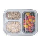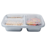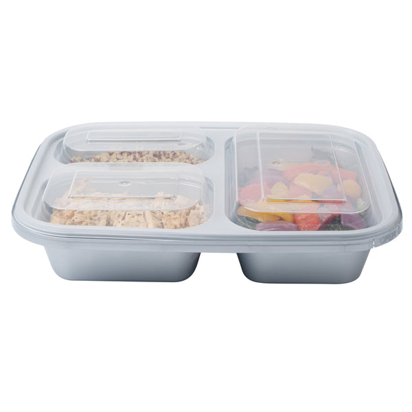 Futura 30 oz Silver Plastic Tamper-Evident 3-Compartment Container - with Clear Lid, Microwavable - 9 1/2