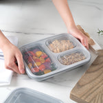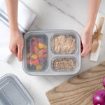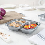 • 3 compartments provide space to divide sides or snacks from main dishes
