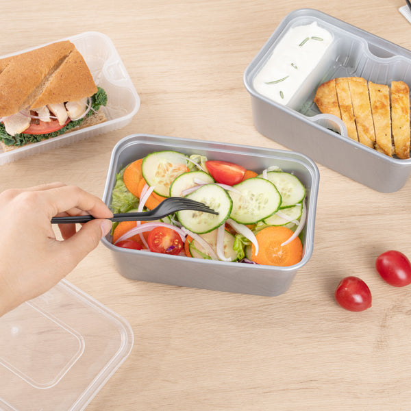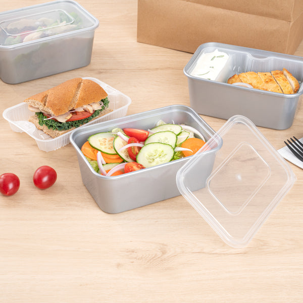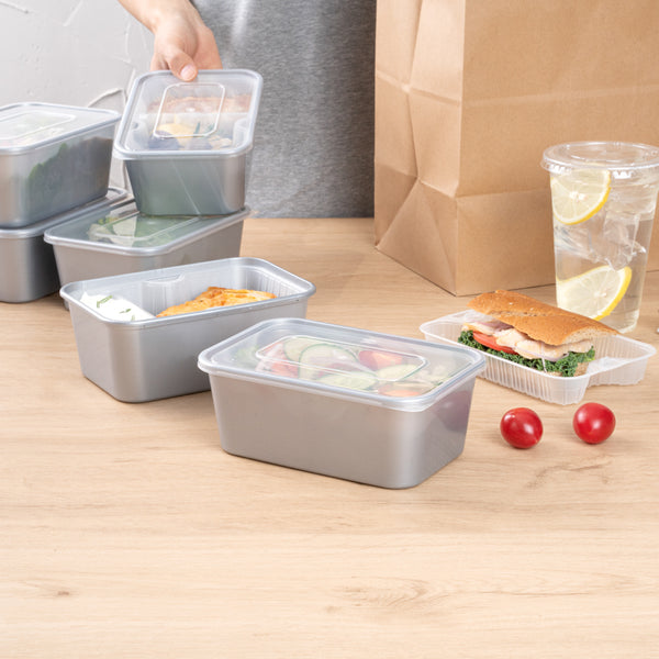 A number of these meal prep containers have coordinating inserts available, allowing you to create your own packaging solution and store numerous menu items in the same container. Our selection of food containers comes in a clear, silver, or matte gray finish to ensure your premade meals stand out from the crowd.