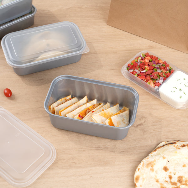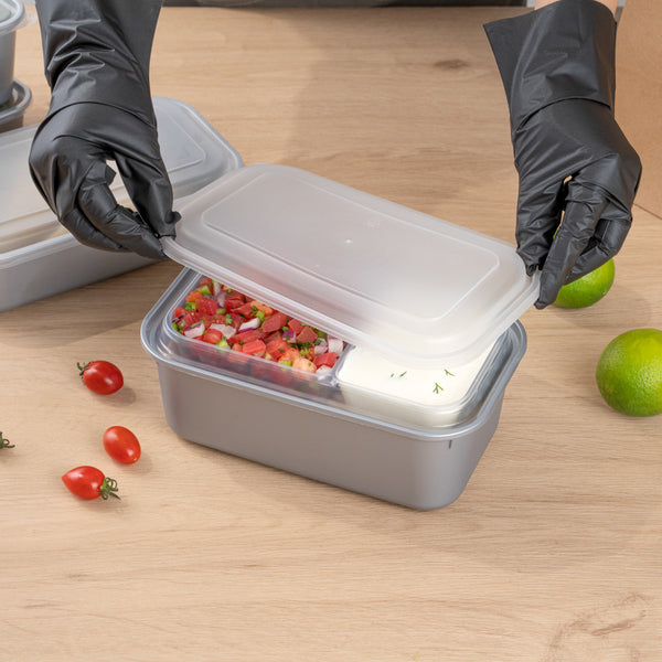 A number of these meal prep containers have coordinating inserts available, allowing you to create your own packaging solution and store numerous menu items in the same container. Our selection of food containers comes in a clear, silver, or matte gray finish to ensure your premade meals stand out from the crowd.