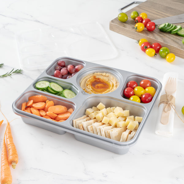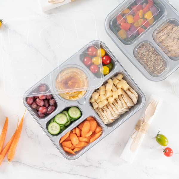 A number of these meal prep containers have coordinating inserts available, allowing you to create your own packaging solution and store numerous menu items in the same container. Our selection of food containers comes in a clear, silver, or matte gray finish to ensure your premade meals stand out from the crowd.