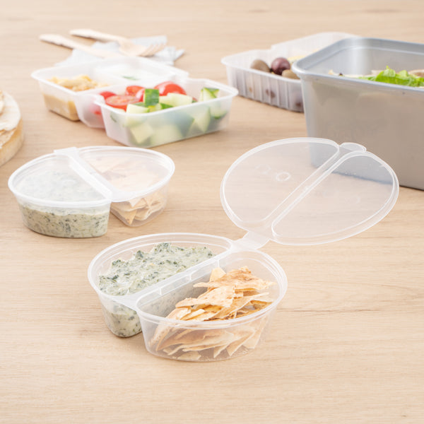 - 2 Compartments to pack up condiments in a single container