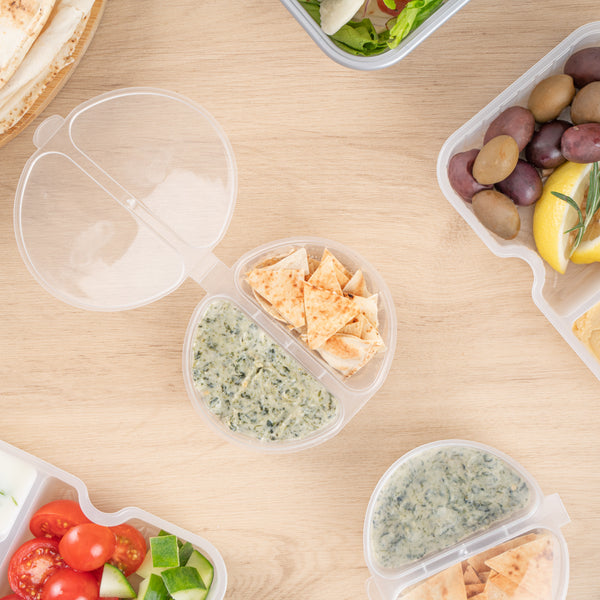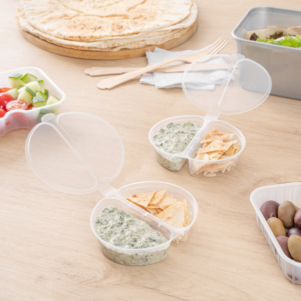 - 2 Compartments to pack up condiments in a single container