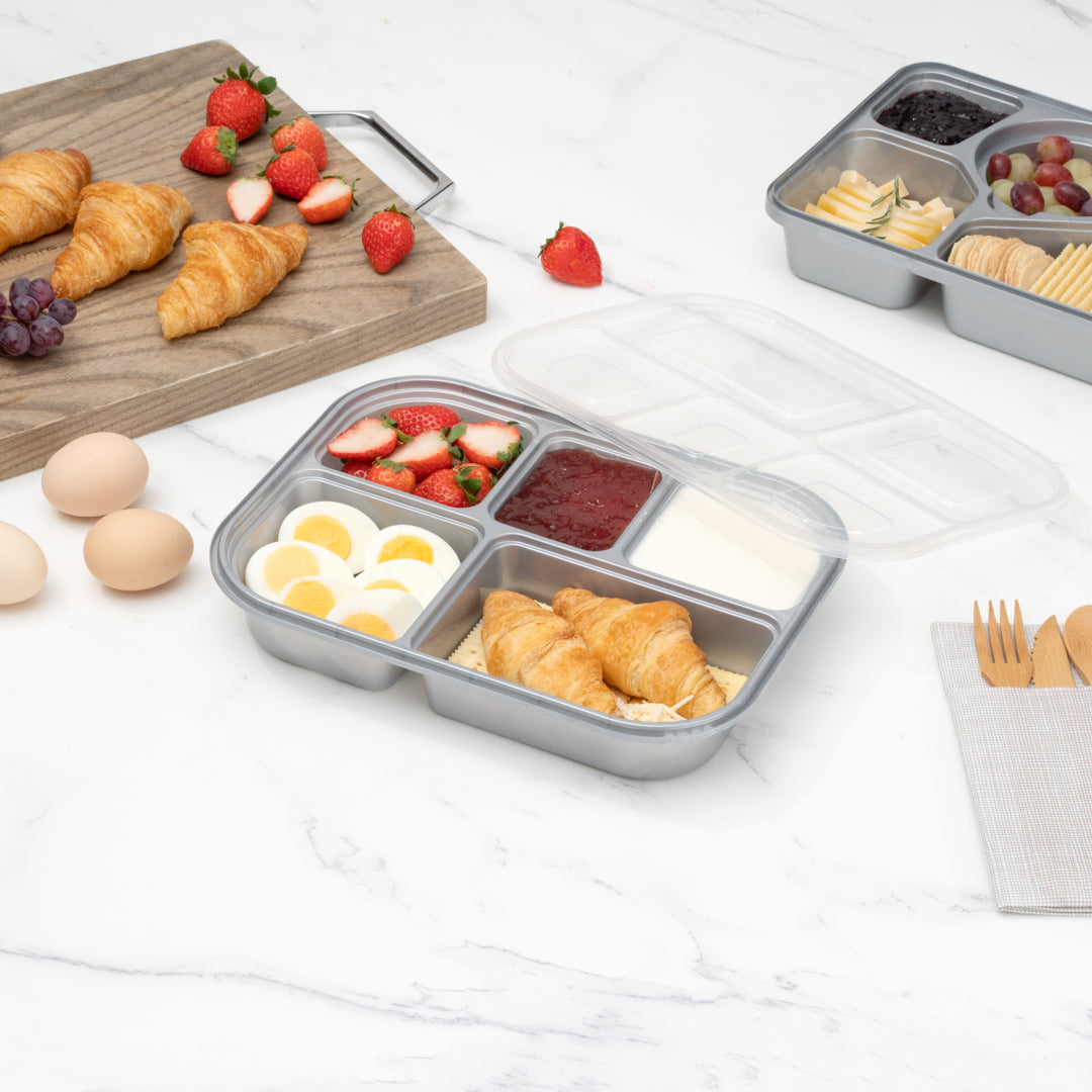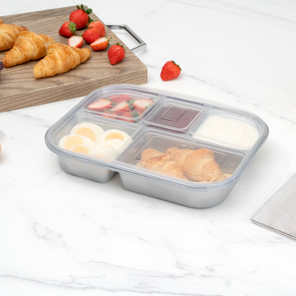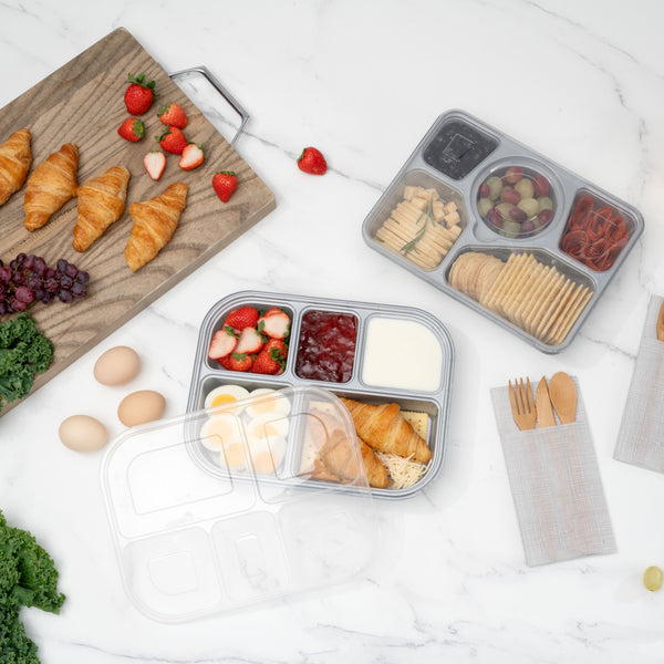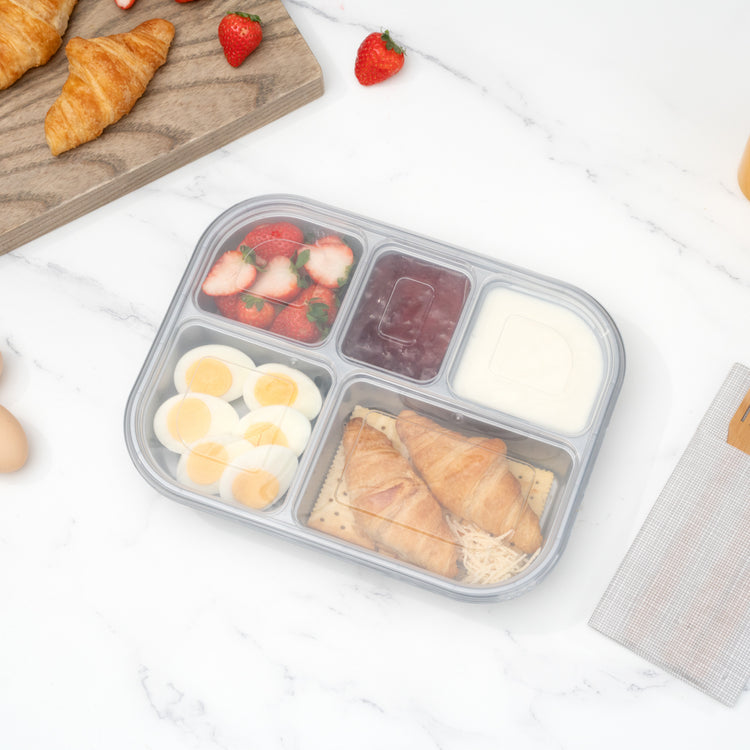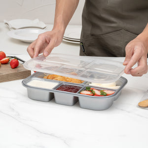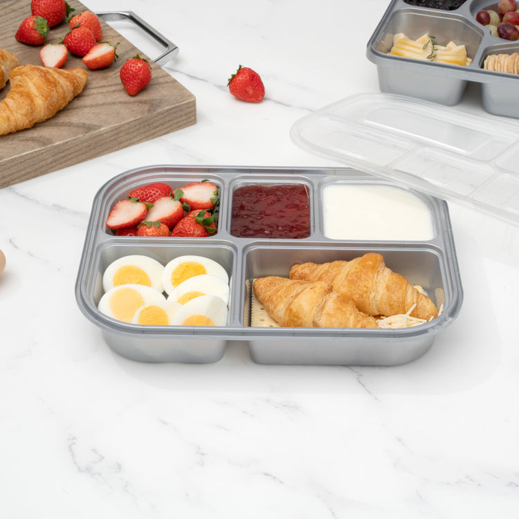 - 5 compartments provide space to divide sides or snacks from main dishes