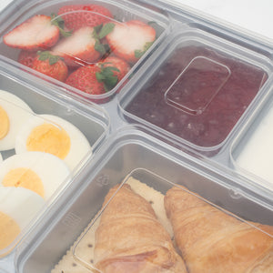 A number of these meal prep containers have coordinating inserts available, allowing you to create your own packaging solution and store numerous menu items in the same container. Our selection of food containers comes in a clear, silver, or matte gray finish to ensure your premade meals stand out from the crowd.