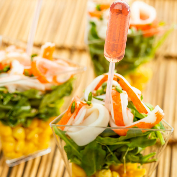 Add an extra burst of flavor to your appetizers, desserts, and imaginative cocktails with our Gastro Science 5-milliliter Balloon Clear Plastic Pipettes. Capable of holding up to 5 milliliters, these food-grade pipettes can be filled with your choice of liquids. These plastic food pipettes provide precision control when dispensing sauces or liquid ingredients to any food without affecting the texture of the dish. The compact size of our pipettes offers chefs an innovative way to incorporate artistic flair into their presentations. From sauces and vinaigrettes to infused oils or fruit coulis, these transparent plastic pipettes are incredibly versatile. Measuring 6 inches long, each sauce pipette efficiently holds up to 5 mL of liquid. Sold in a 500 count box.