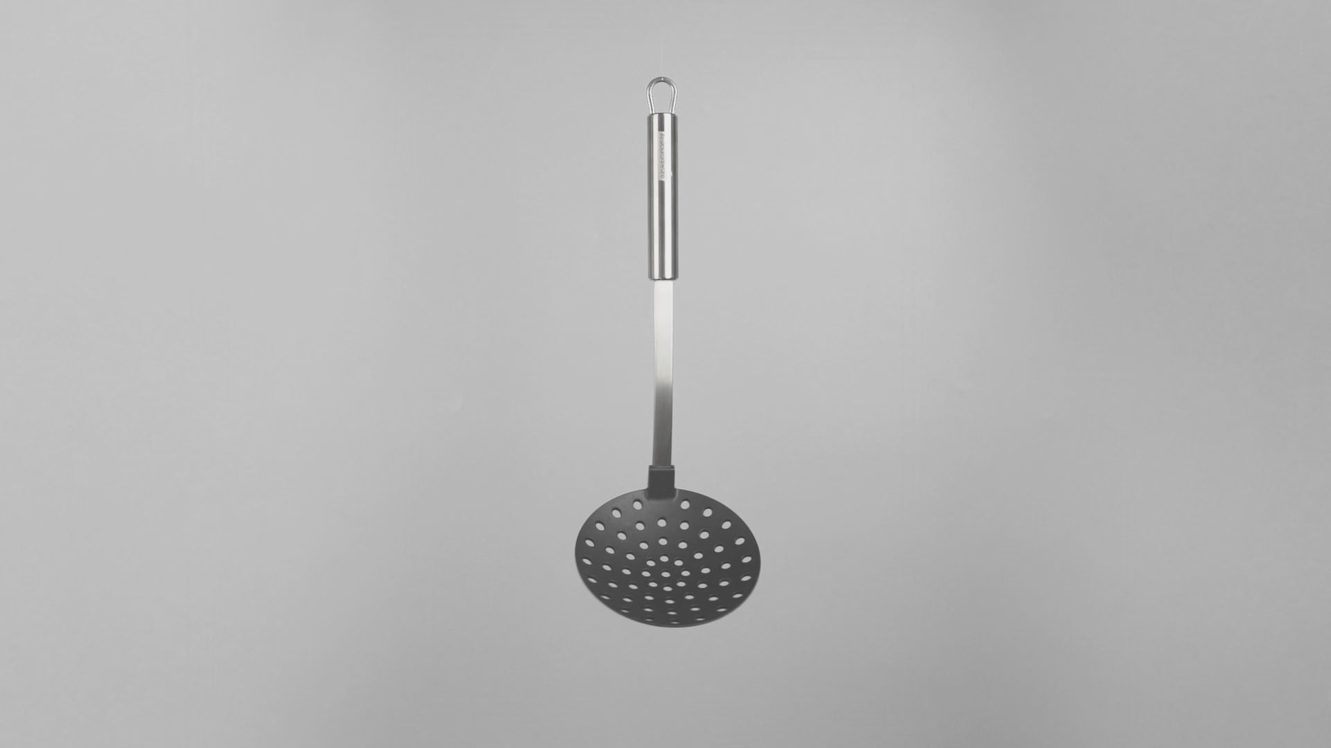 BLACK NYLON HIGH HEAT SKIMMER - WITH STAINLESS STEEL HANDLE