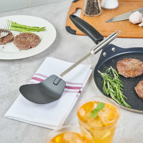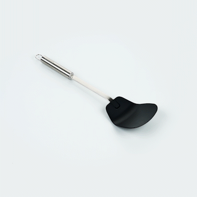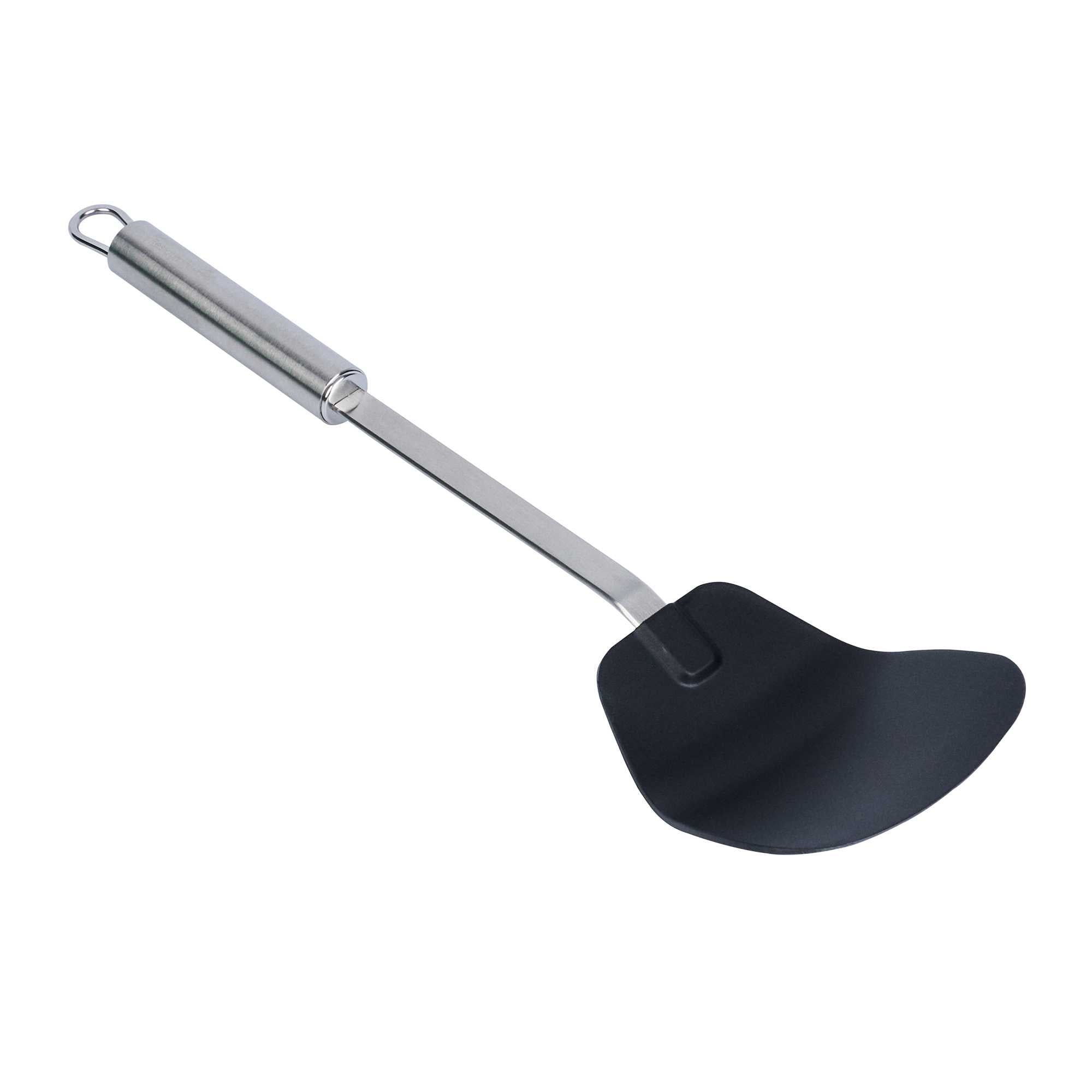 BLACK NYLON HIGH HEAT WOK SPATULA - WITH STAINLESS STEEL HANDLE