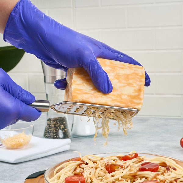 Enhance your kitchen efficiency with precision grating for culinary excellence. The German Standard Cheese Grater boasts sharp blades that ensure precise grating for exquisite garnishes, ideal for chefs seeking a reliable cheese grater. Constructed from durable stainless steel, this grater withstands the rigors of frequent use. Its ergonomically designed handle offers a comfortable grip, reducing hand fatigue during extended use, making it an indispensable stainless steel grater for bustling kitchens. The dishwasher-safe design ensures effortless and hygienic cleaning, streamlining post-service maintenance and preserving the integrity of this versatile vegetable grater. With a compact size of 10 inches by 2.4 inches, it fits seamlessly into any professional kitchen setup, adding value with its efficient design and robust build. Invest in this essential kitchen tool to elevate your culinary creations. Each order includes 1 German Standard Cheese Grater with Ergonomic Handle.